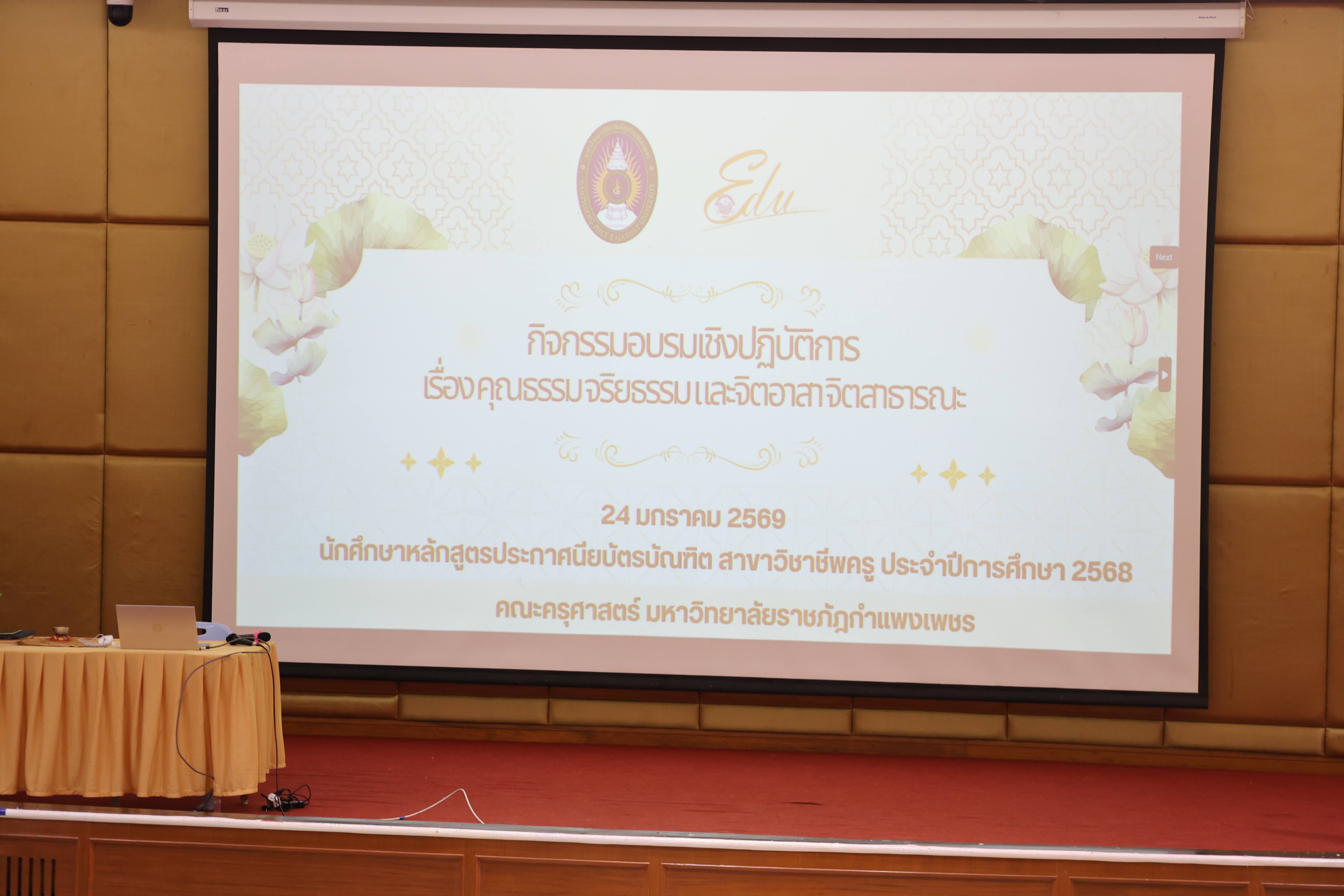 คณะครุศาสตร์ มหาวิทยาลัยราชภัฏกำแพงเพชร. (2569). กิจกรรมอบรมเชิงปฏิบัติการคุณธรรม จริยธรรม และจิตอาสาจิตสาธารณะ. สืบค้น 28 มกราคม 2569, จาก https://edu.kpru.ac.th/main/?lang=TH&page_id=861