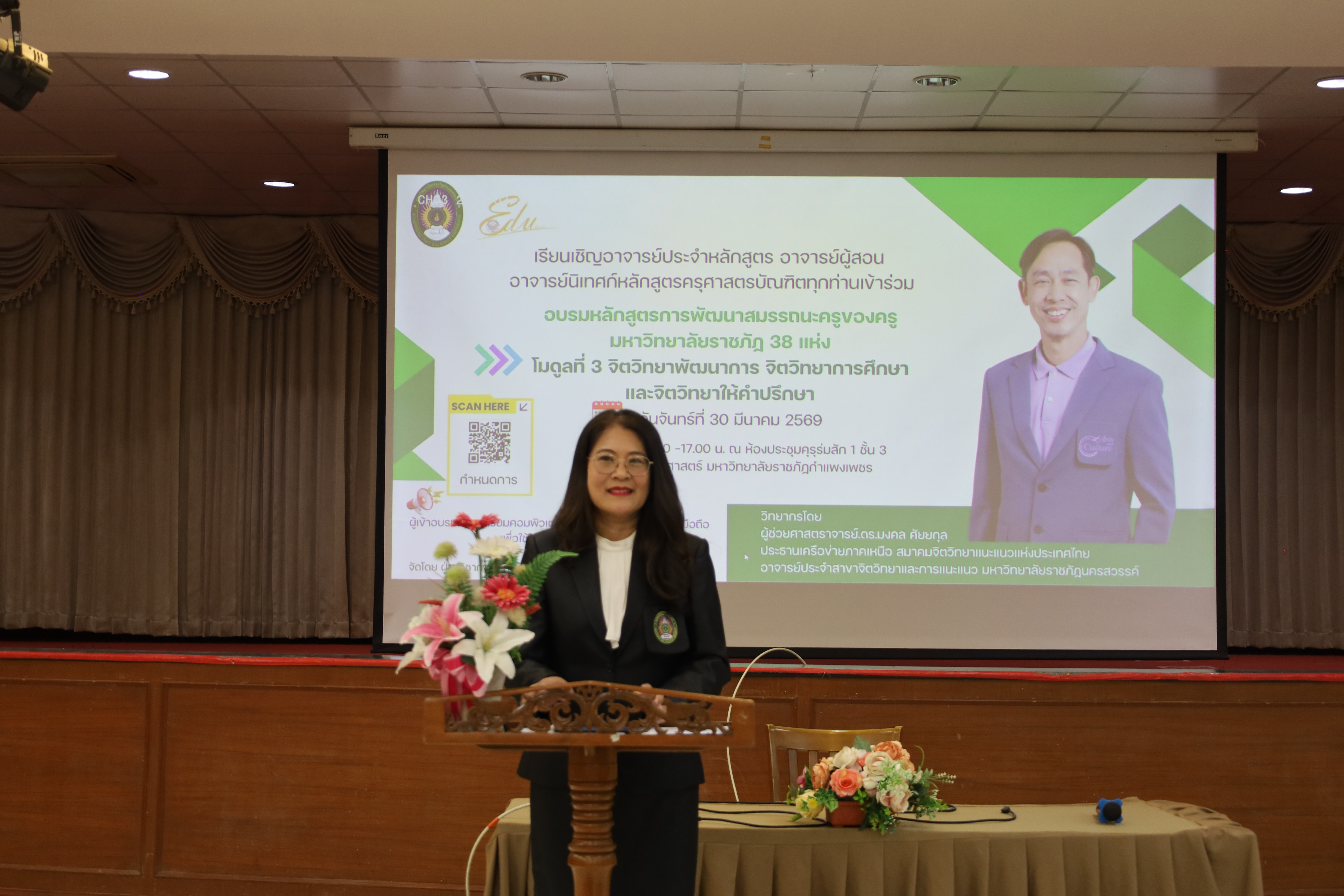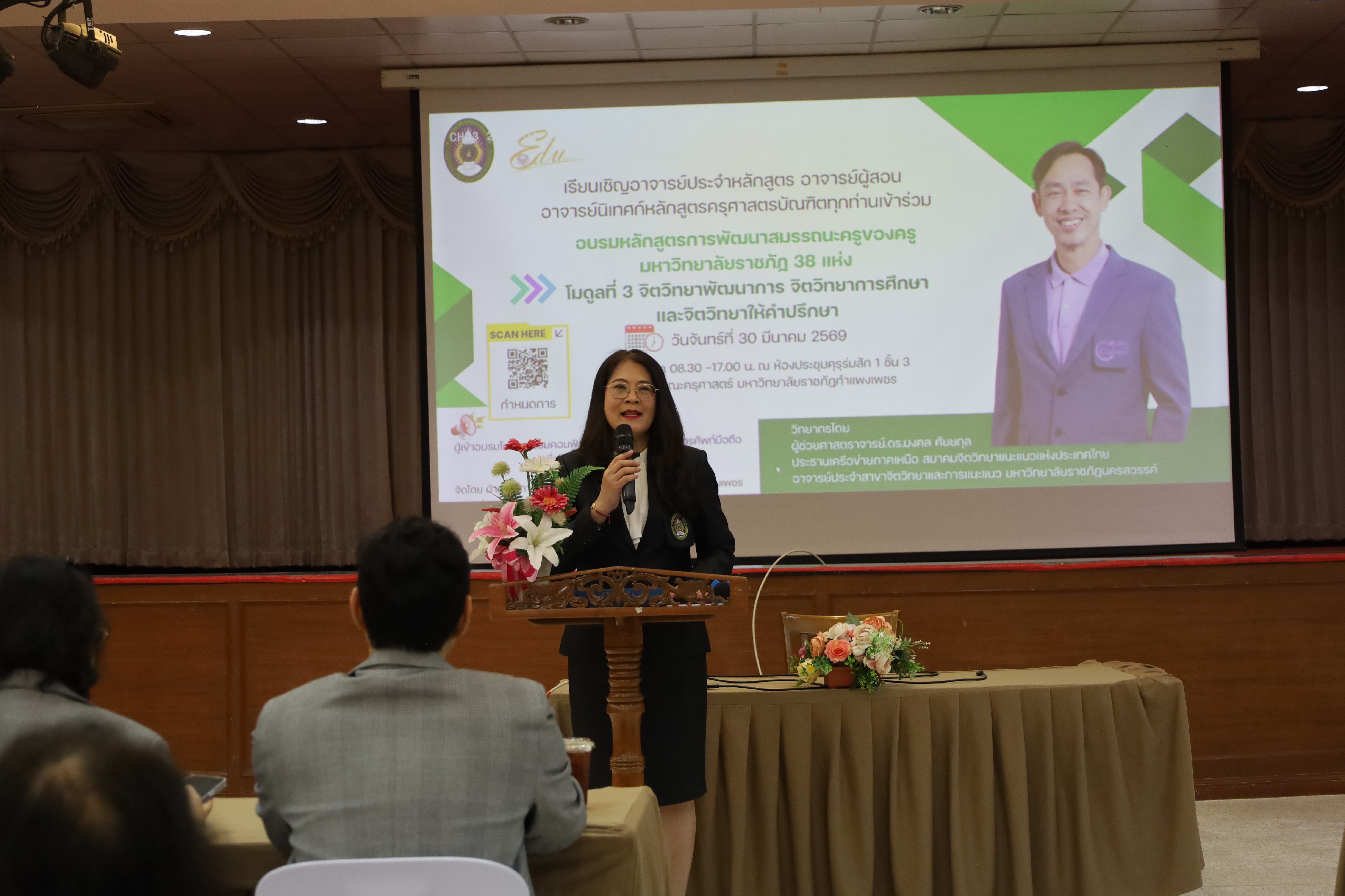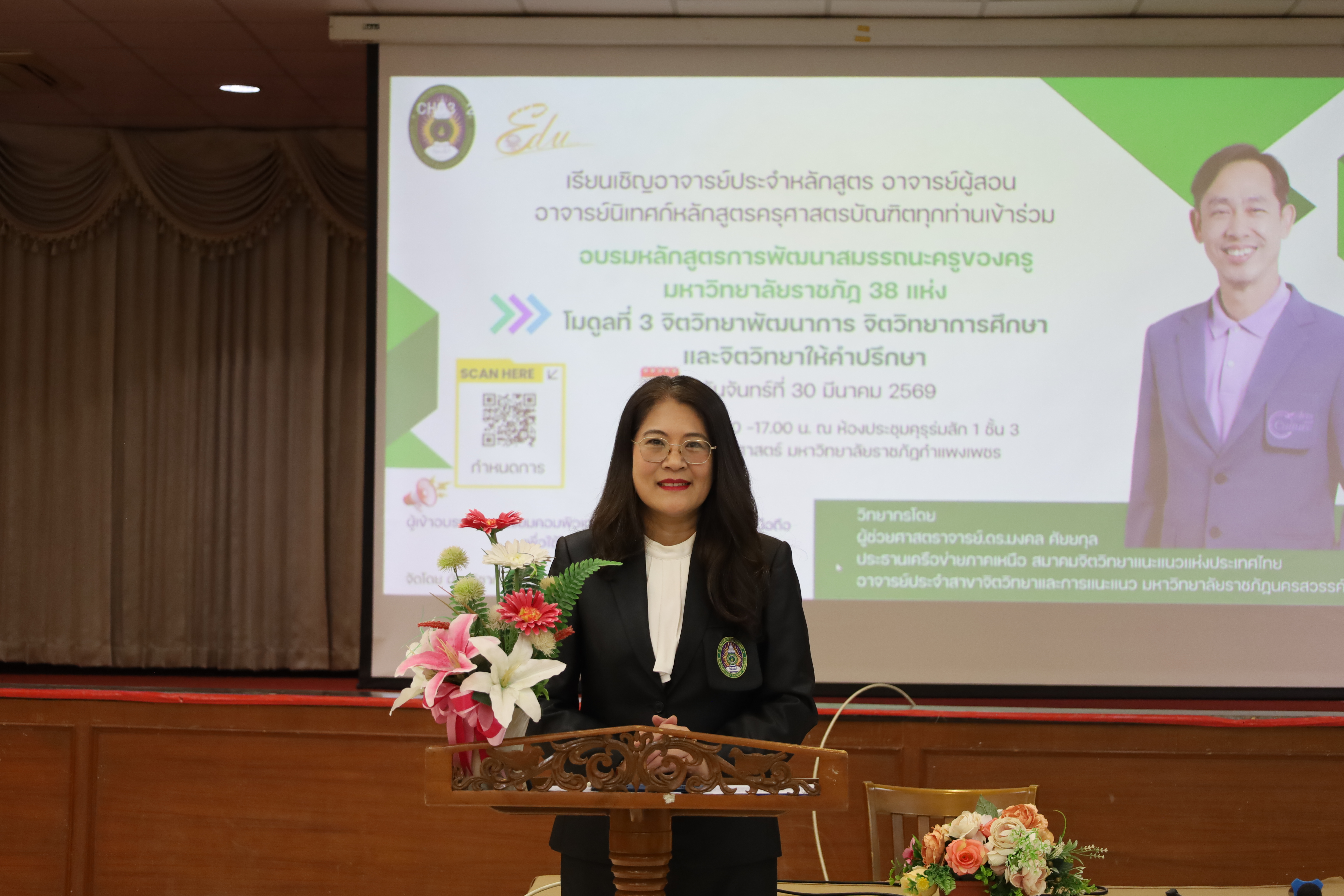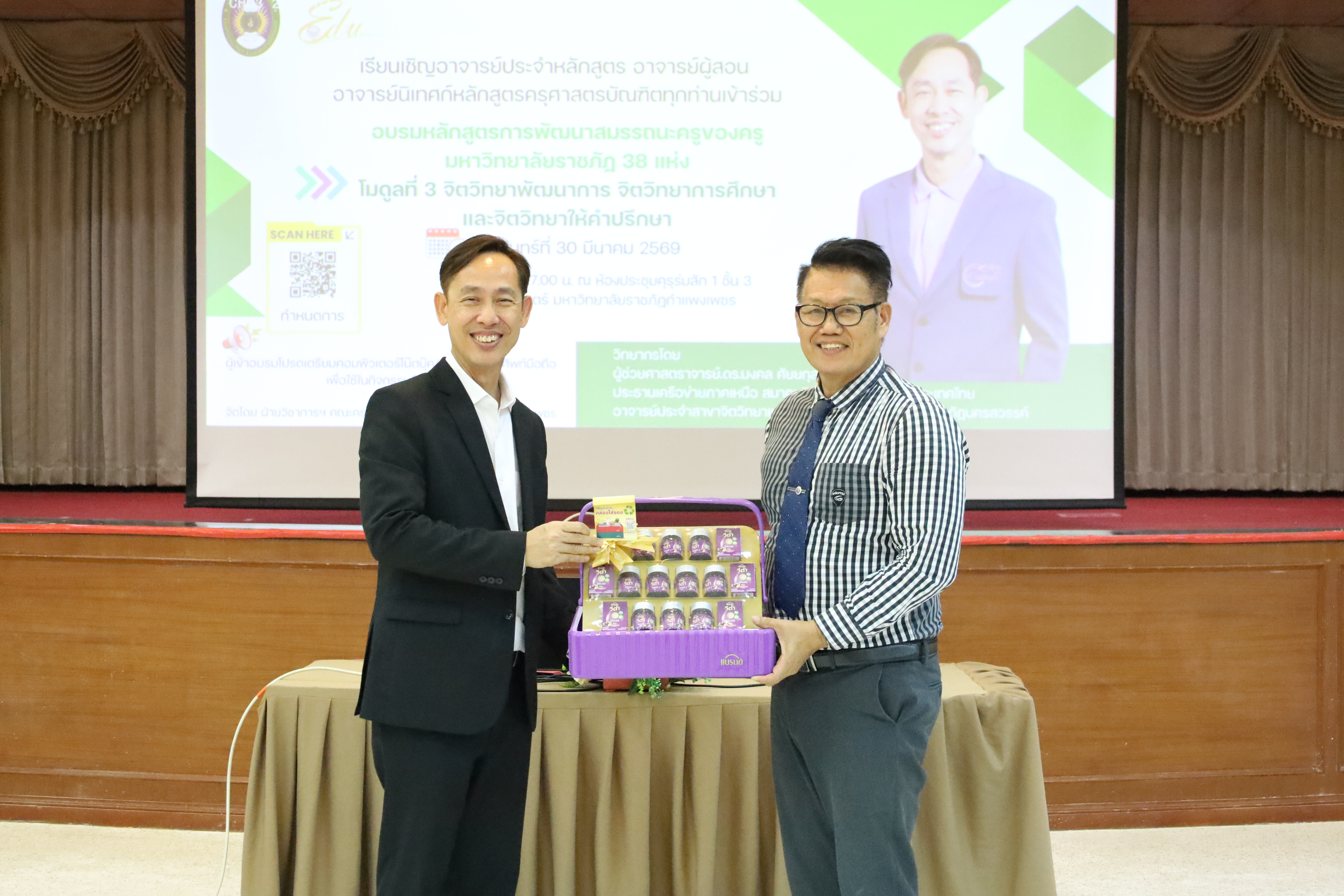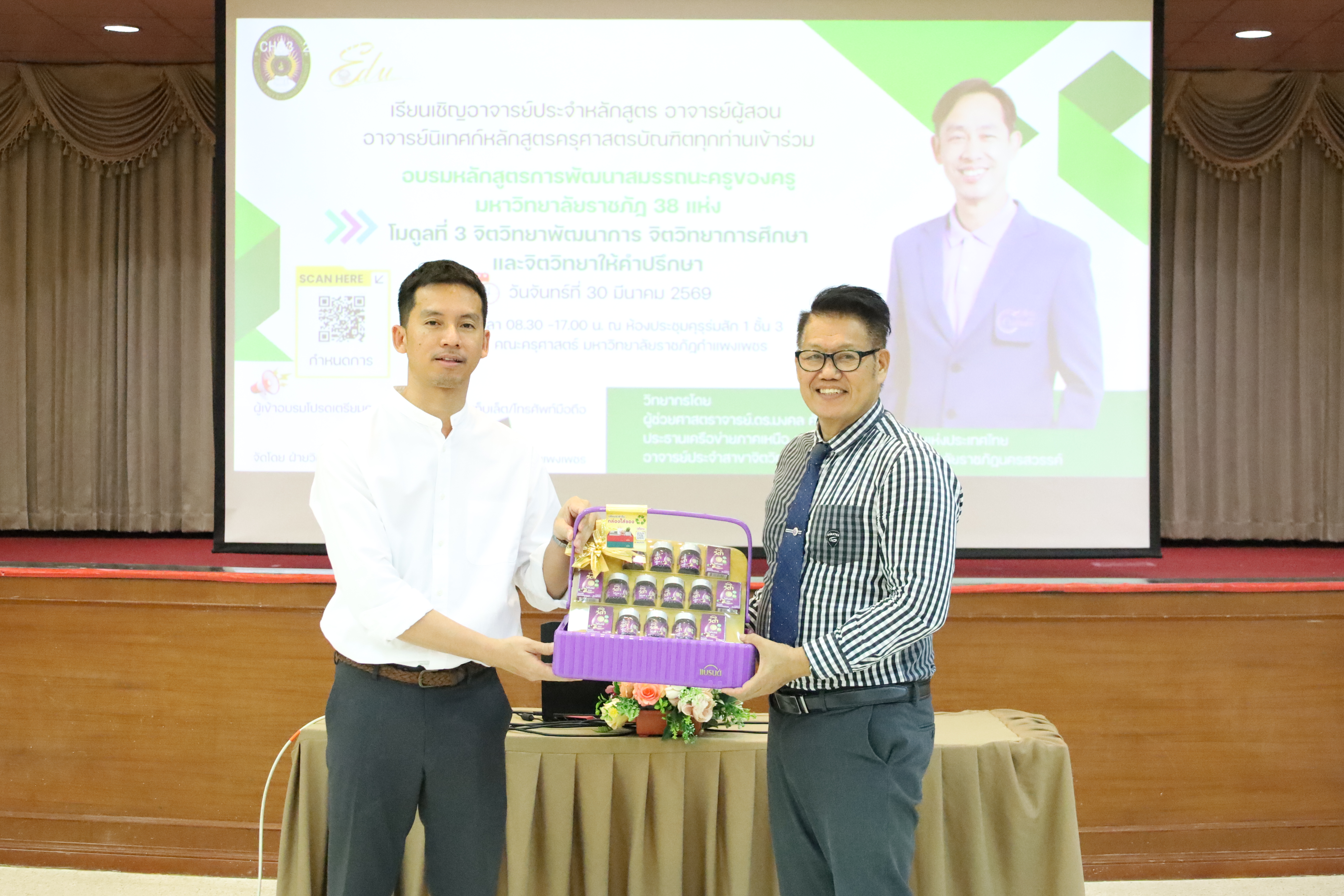 และ โมดูลที่ 10 ทักษะการโค้ชเพื่อการพัฒนา Soft Skills โดยได้รับเกียรติจากวิทยากรผู้ทรงคุณวุฒิจากหลากหลายสถาบัน และในวันนี้เป็นการอบรมในโมดูลแรก ได้แก่ โมดูลที่ 3 เรื่อง “จิตวิทยาพัฒนาการ จิตวิทยาการศึกษา และจิตวิทยาการให้คำปรึกษา” ซึ่งได้รับเกียรติจาก ผู้ช่วยศาสตราจารย์ ดร.มงคล ศัยยกุล ประธานเครือข่ายภาคเหนือ สมาคมจิตวิทยาแนะแนวแห่งประเทศไทย และอาจารย์ปกฉัตร กุสุโมทย์ อาจารย์ประจำสาขาจิตวิทยาและการแนะแนว จากคณะครุศาสตร์ มหาวิทยาลัยราชภัฏนครสวรรค์