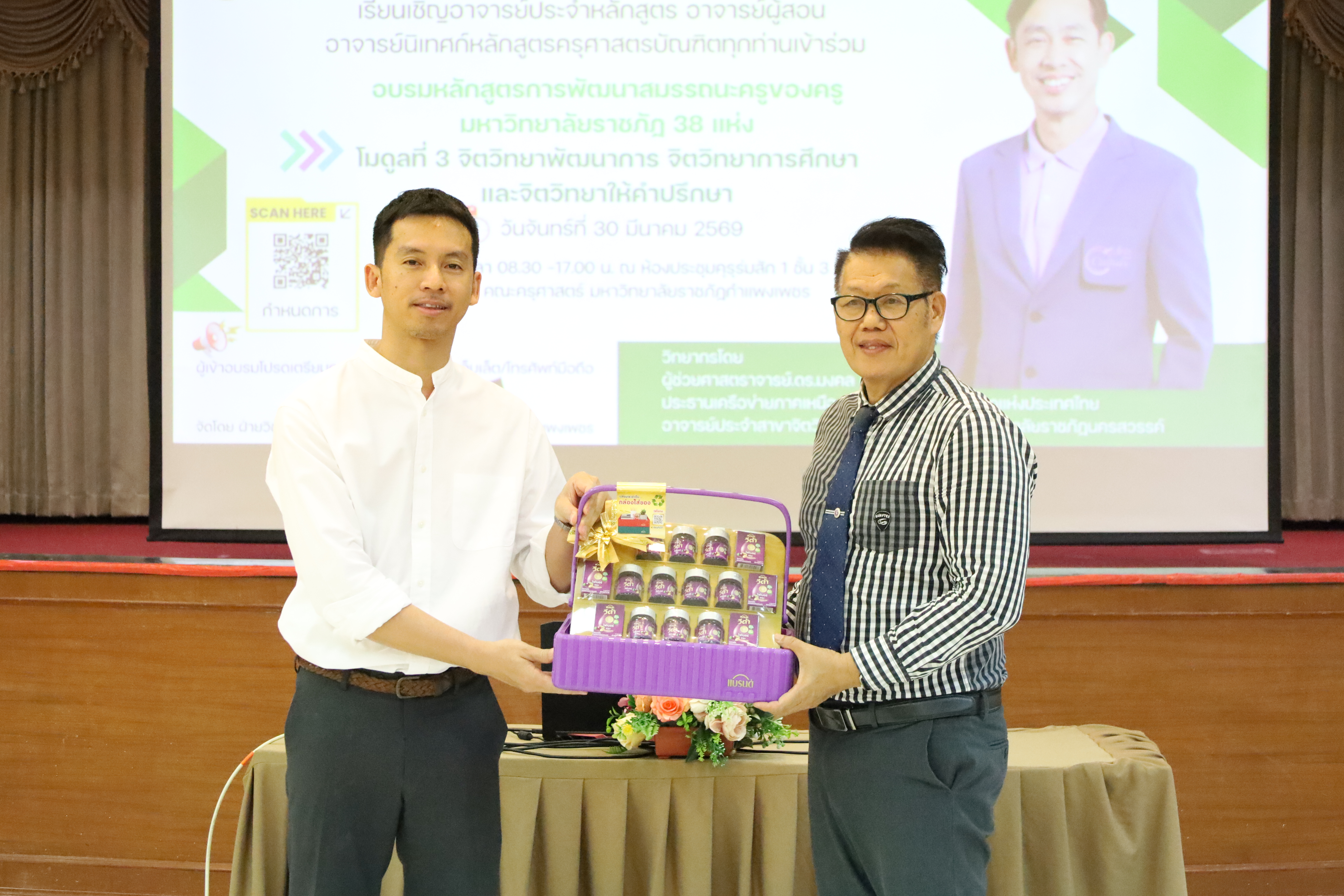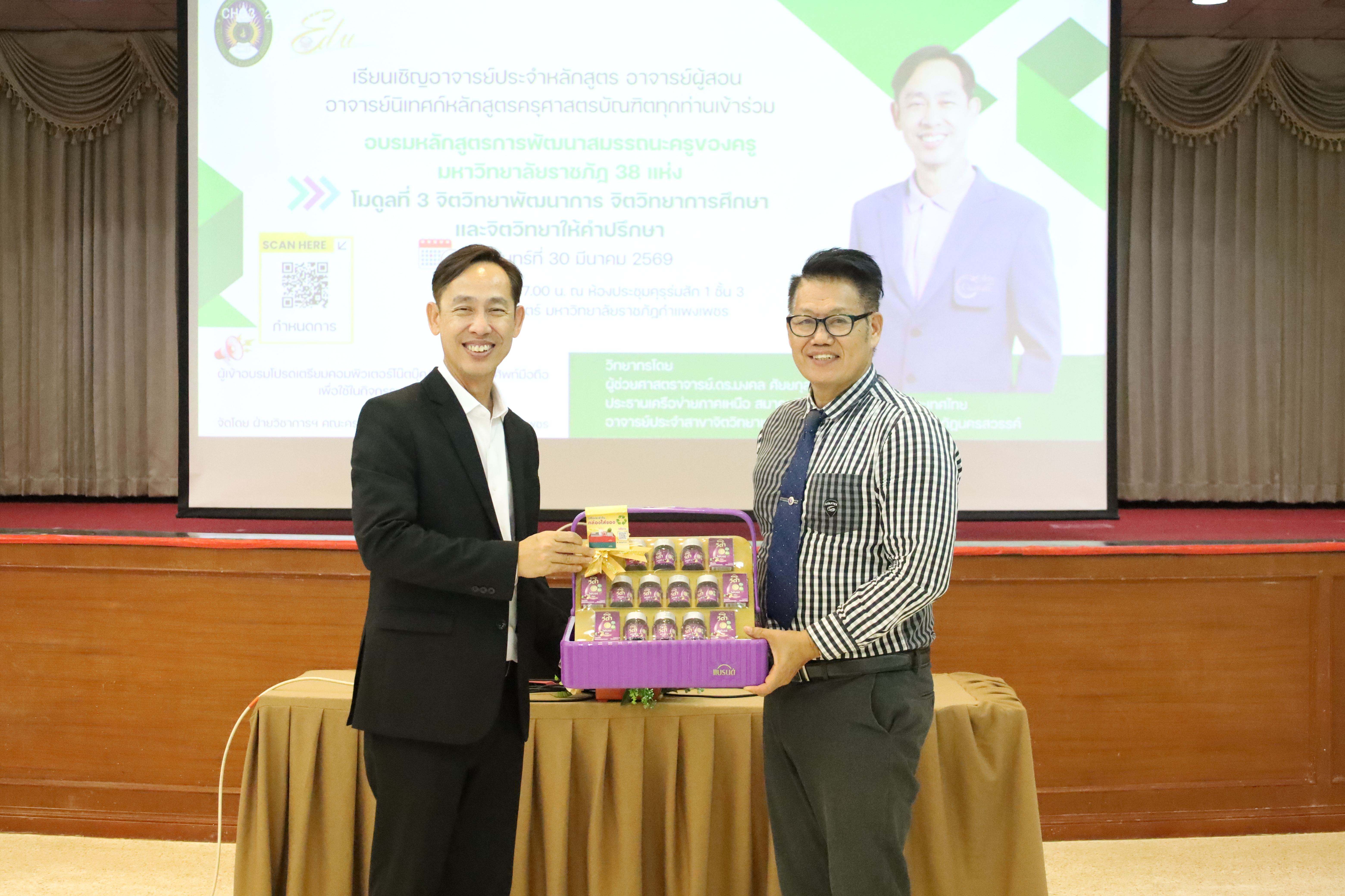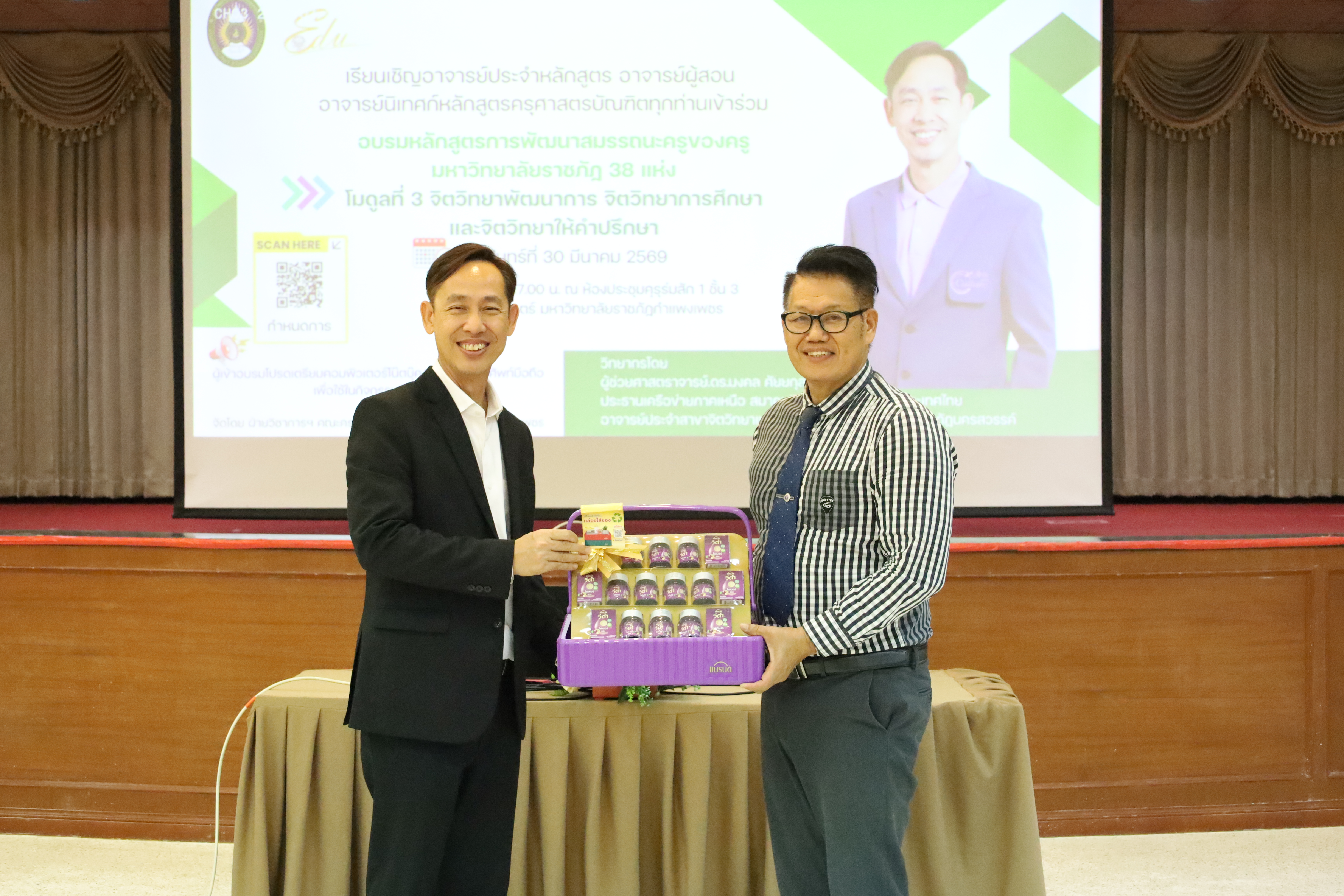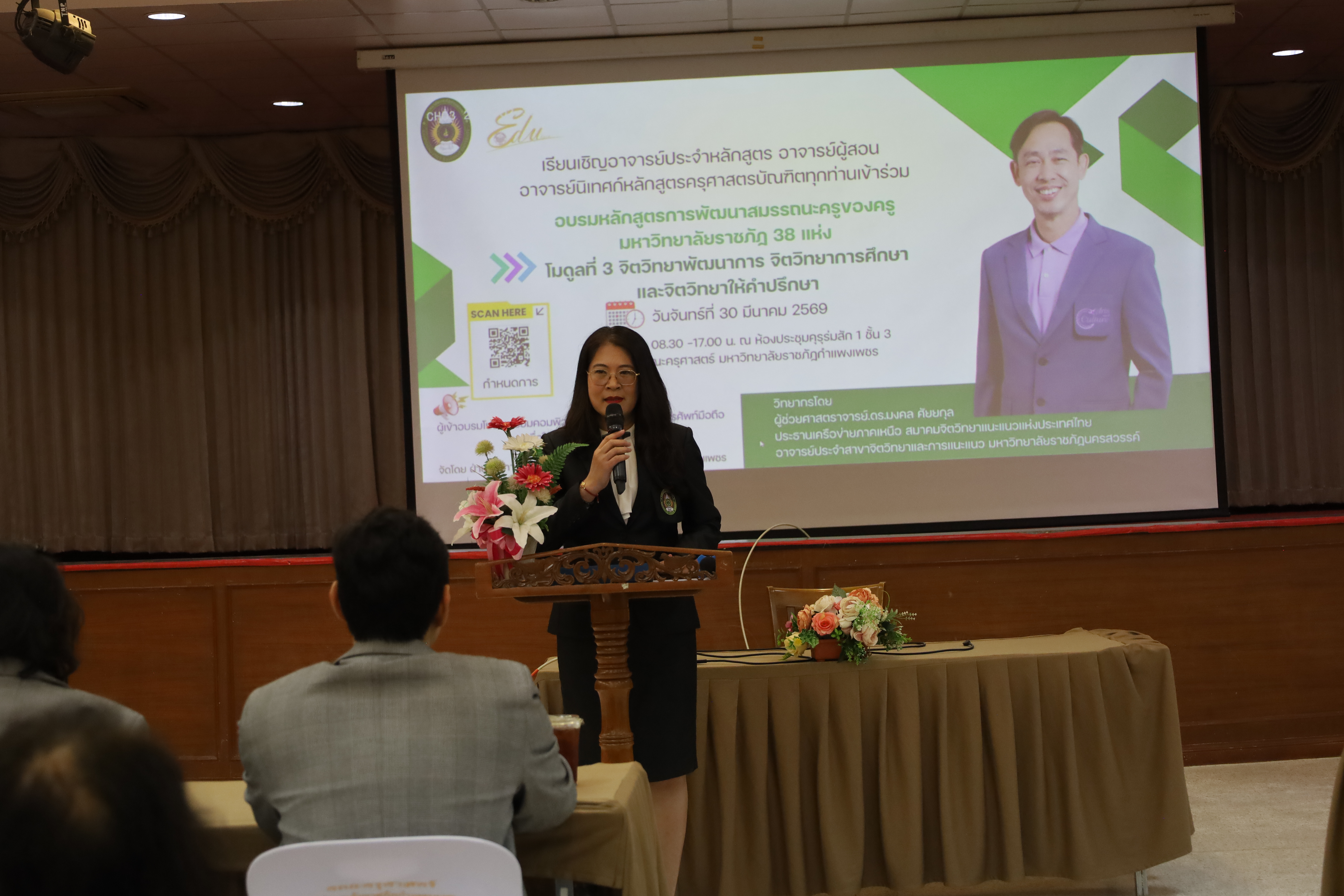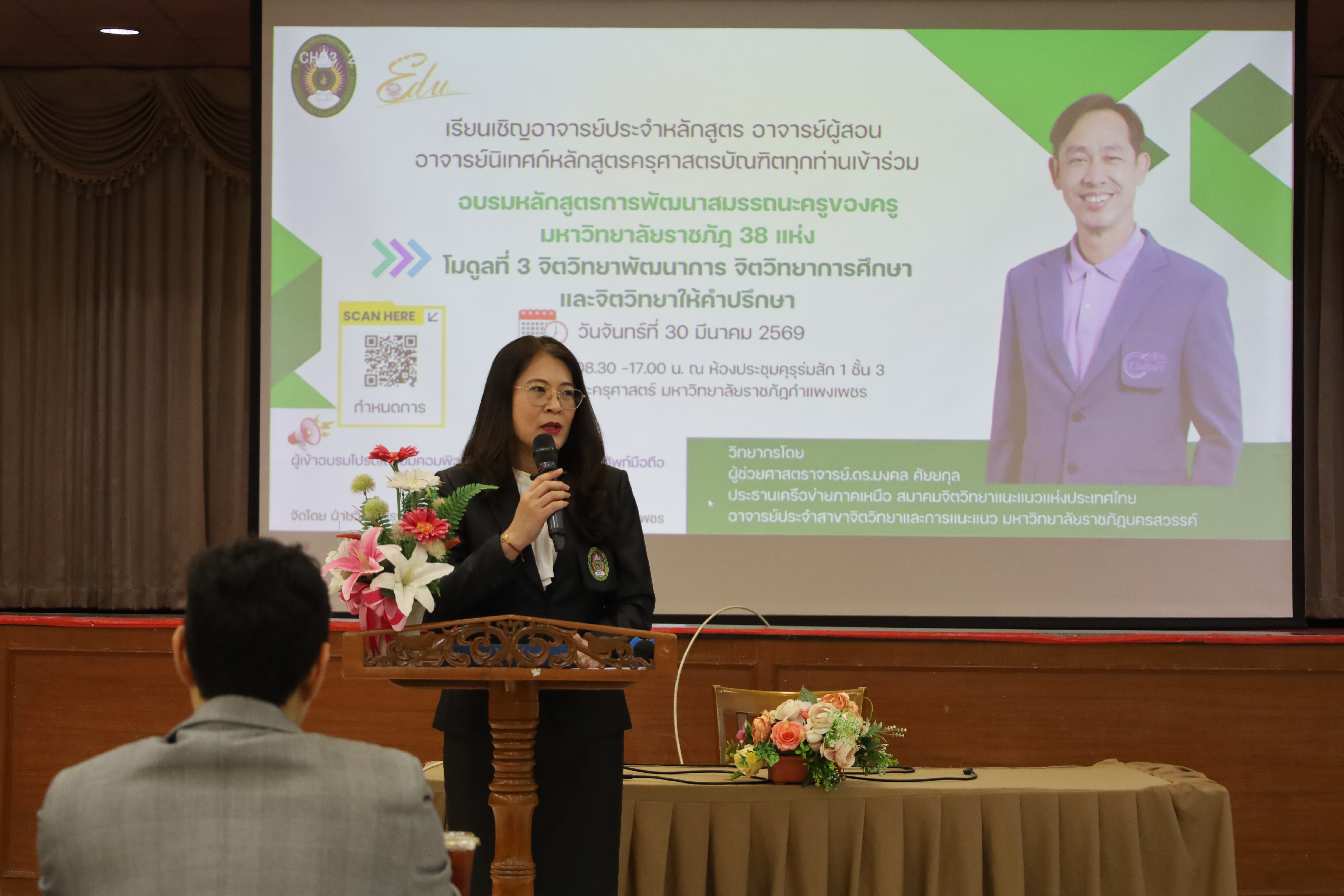 และ โมดูลที่ 10 ทักษะการโค้ชเพื่อการพัฒนา Soft Skills โดยได้รับเกียรติจากวิทยากรผู้ทรงคุณวุฒิจากหลากหลายสถาบัน และในวันนี้เป็นการอบรมในโมดูลแรก ได้แก่ โมดูลที่ 3 เรื่อง “จิตวิทยาพัฒนาการ จิตวิทยาการศึกษา และจิตวิทยาการให้คำปรึกษา” ซึ่งได้รับเกียรติจาก ผู้ช่วยศาสตราจารย์ ดร.มงคล ศัยยกุล ประธานเครือข่ายภาคเหนือ สมาคมจิตวิทยาแนะแนวแห่งประเทศไทย และอาจารย์ปกฉัตร กุสุโมทย์ อาจารย์ประจำสาขาจิตวิทยาและการแนะแนว จากคณะครุศาสตร์ มหาวิทยาลัยราชภัฏนครสวรรค์