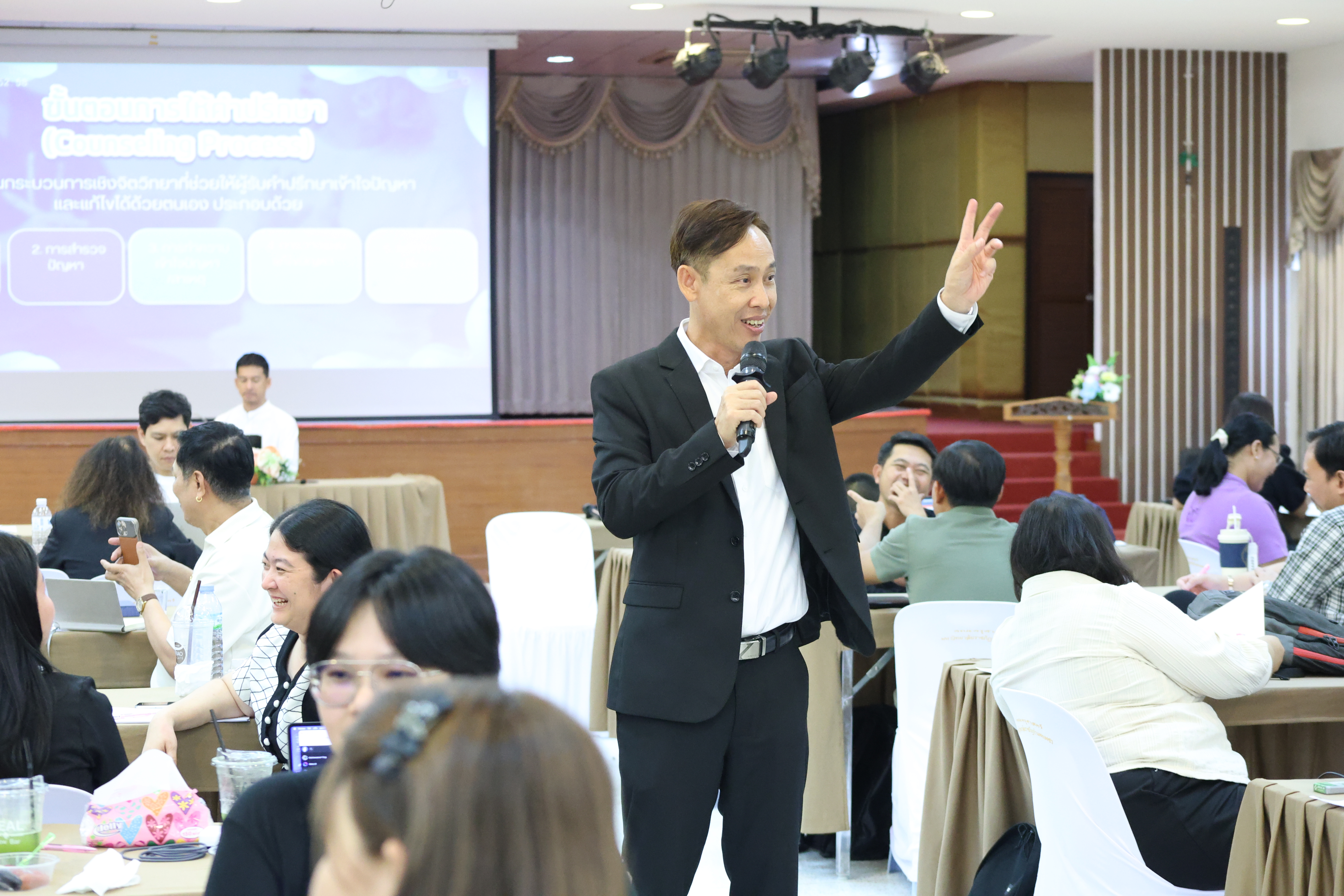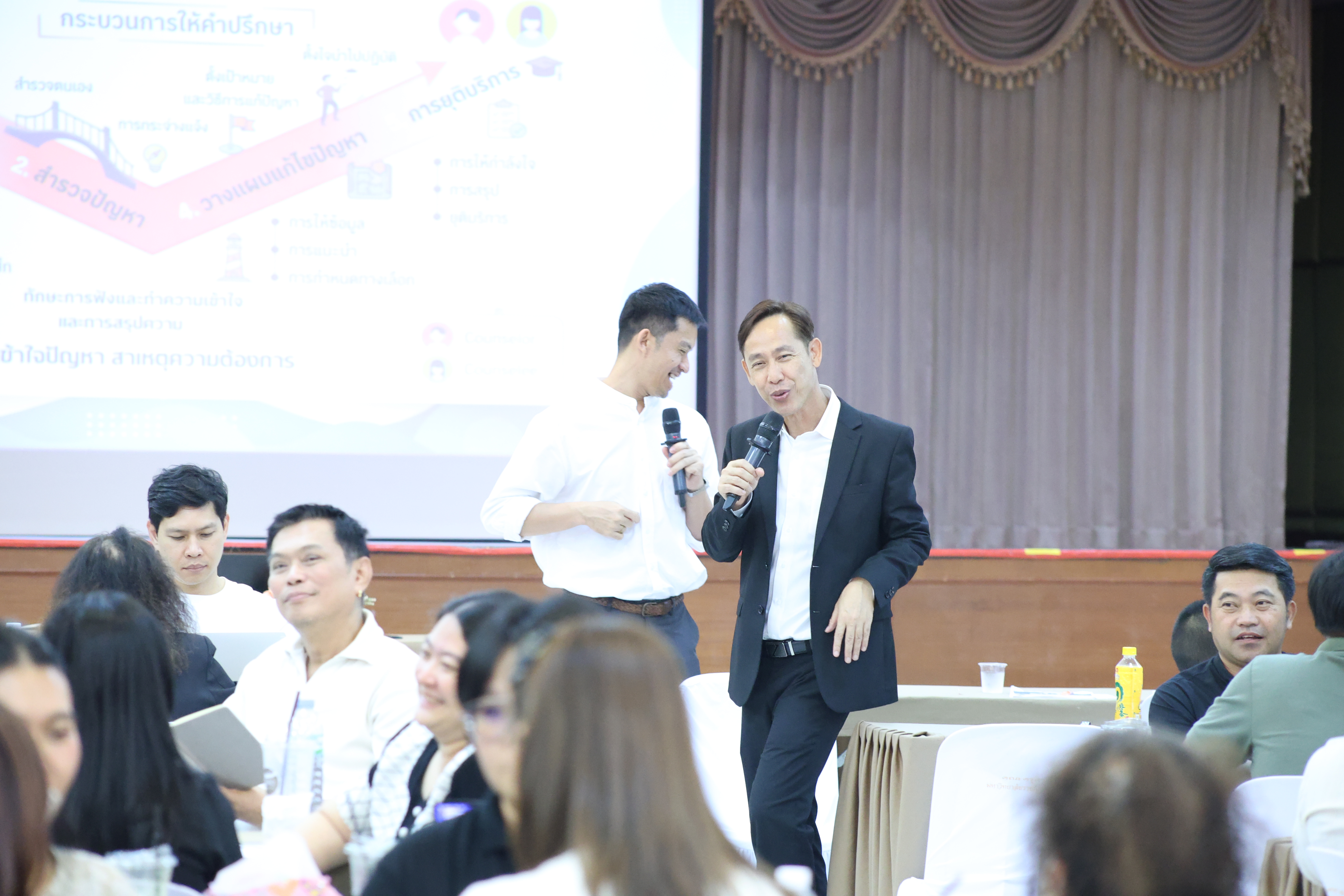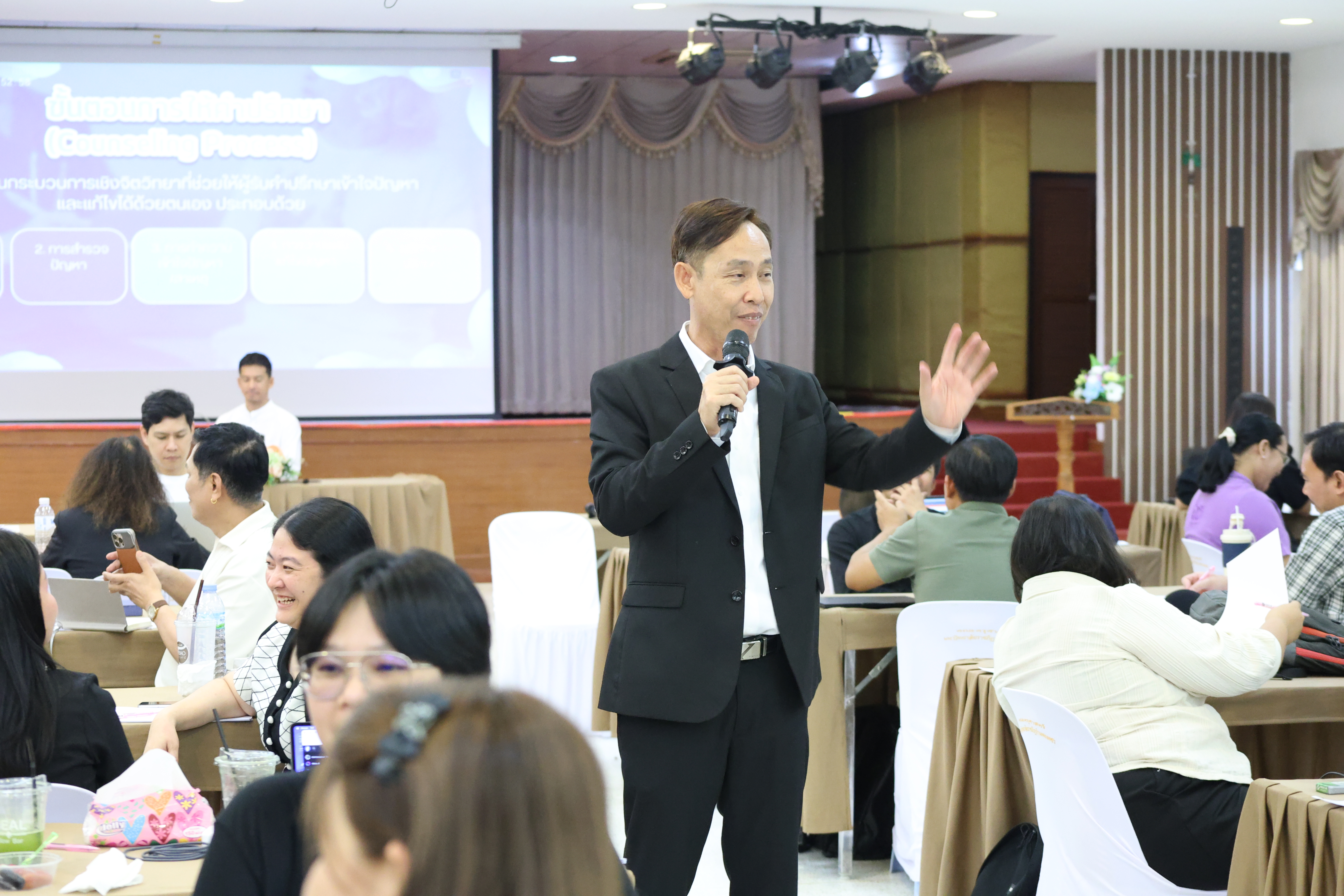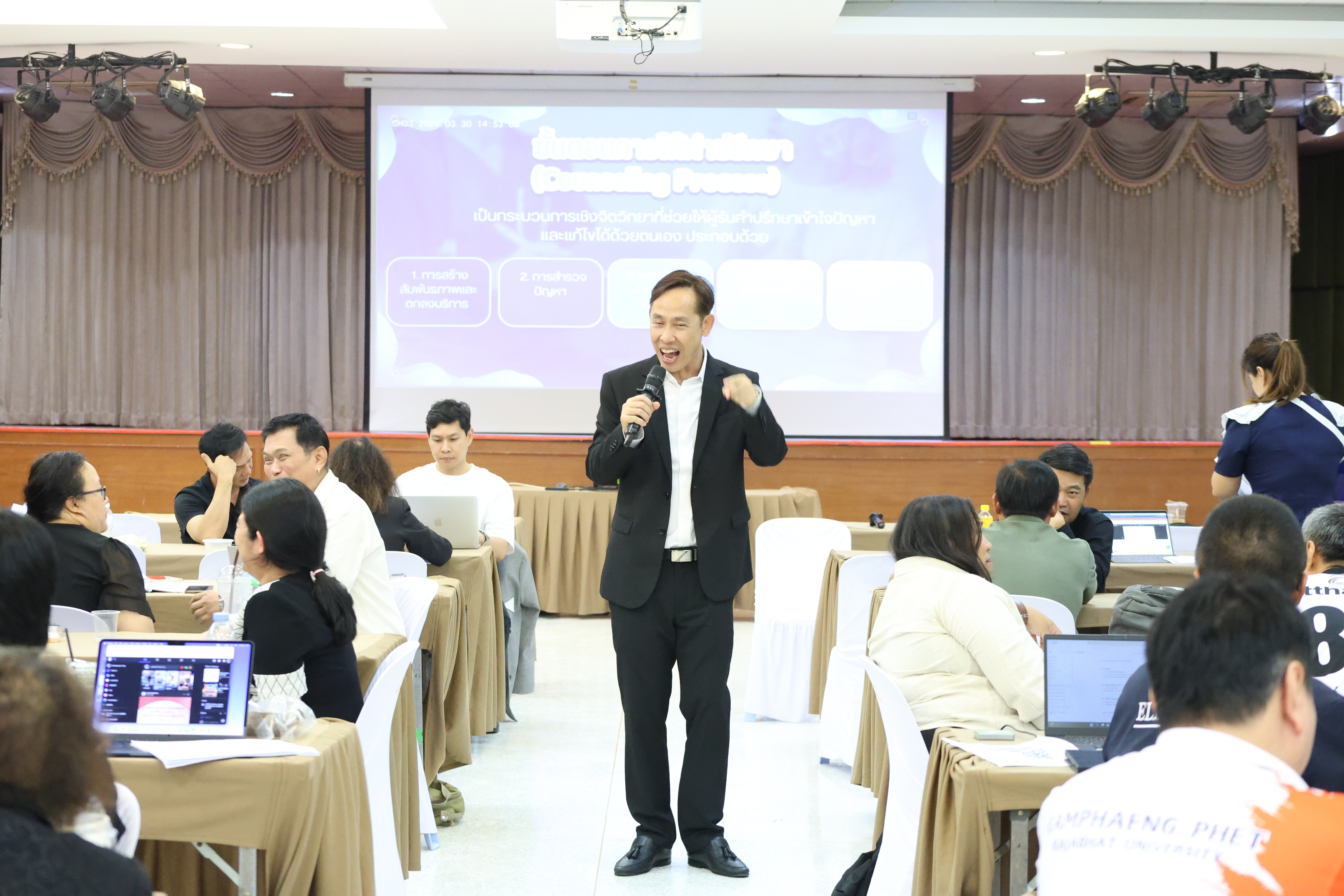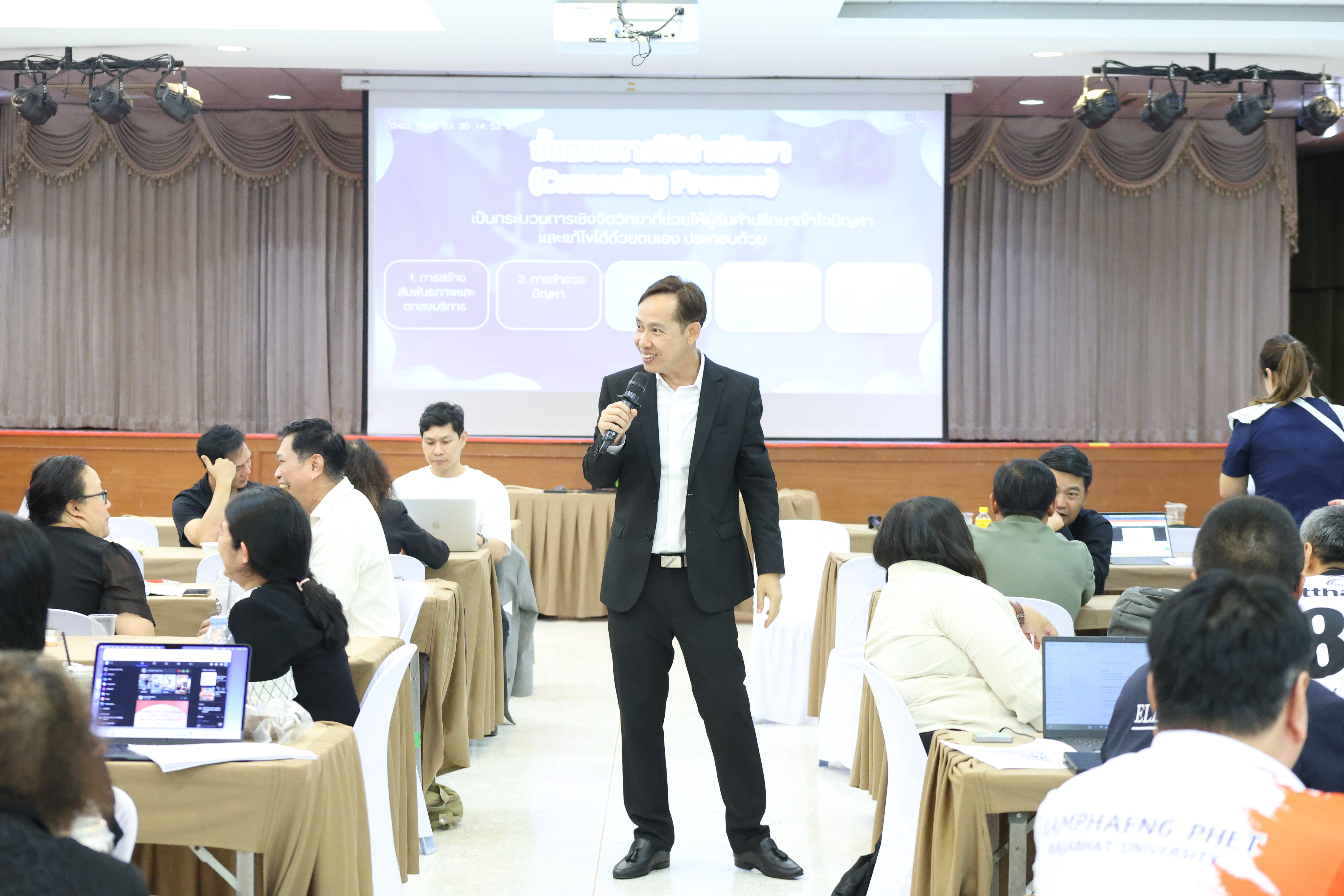 และ โมดูลที่ 10 ทักษะการโค้ชเพื่อการพัฒนา Soft Skills โดยได้รับเกียรติจากวิทยากรผู้ทรงคุณวุฒิจากหลากหลายสถาบัน และในวันนี้เป็นการอบรมในโมดูลแรก ได้แก่ โมดูลที่ 3 เรื่อง “จิตวิทยาพัฒนาการ จิตวิทยาการศึกษา และจิตวิทยาการให้คำปรึกษา” ซึ่งได้รับเกียรติจาก ผู้ช่วยศาสตราจารย์ ดร.มงคล ศัยยกุล ประธานเครือข่ายภาคเหนือ สมาคมจิตวิทยาแนะแนวแห่งประเทศไทย และอาจารย์ปกฉัตร กุสุโมทย์ อาจารย์ประจำสาขาจิตวิทยาและการแนะแนว จากคณะครุศาสตร์ มหาวิทยาลัยราชภัฏนครสวรรค์
