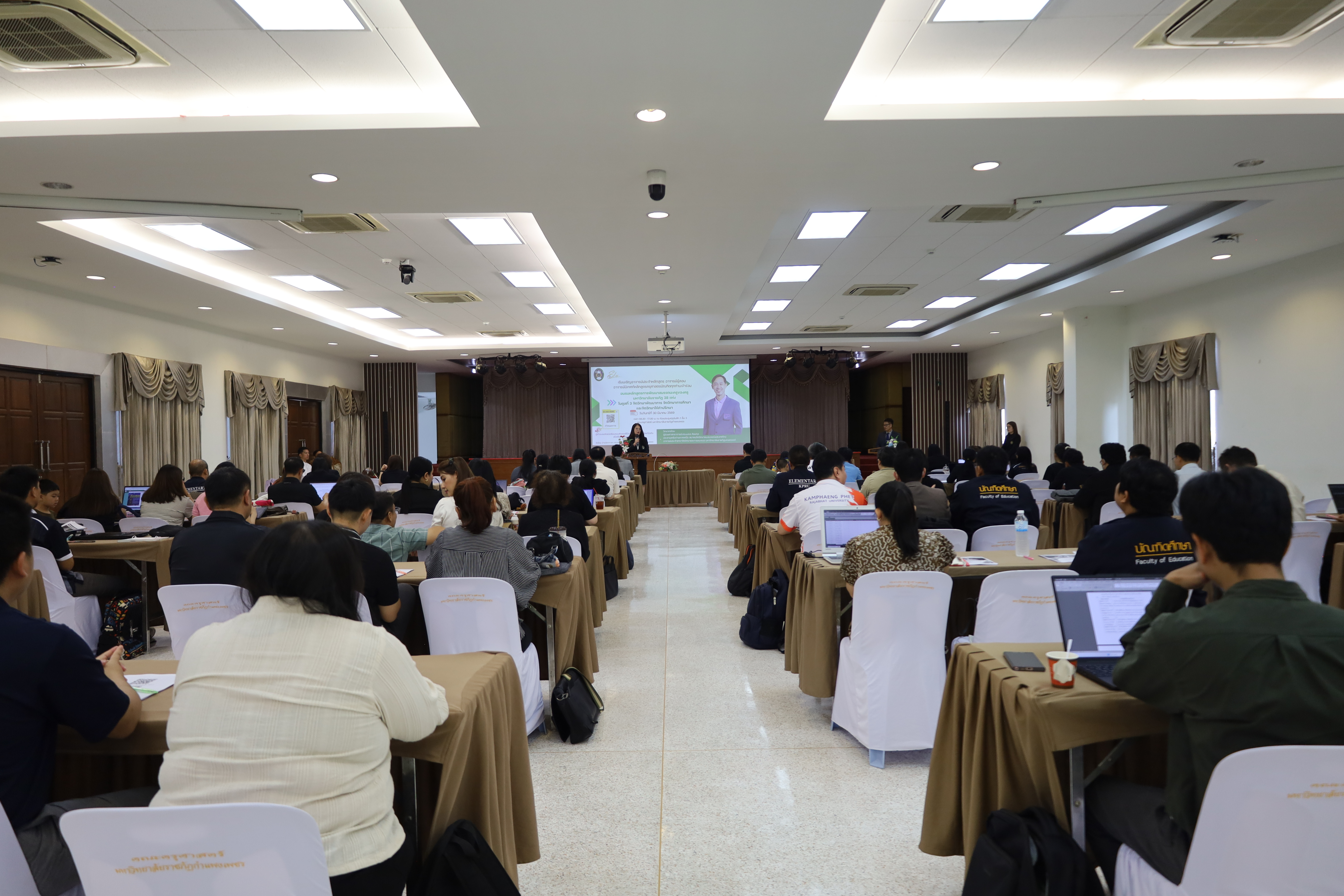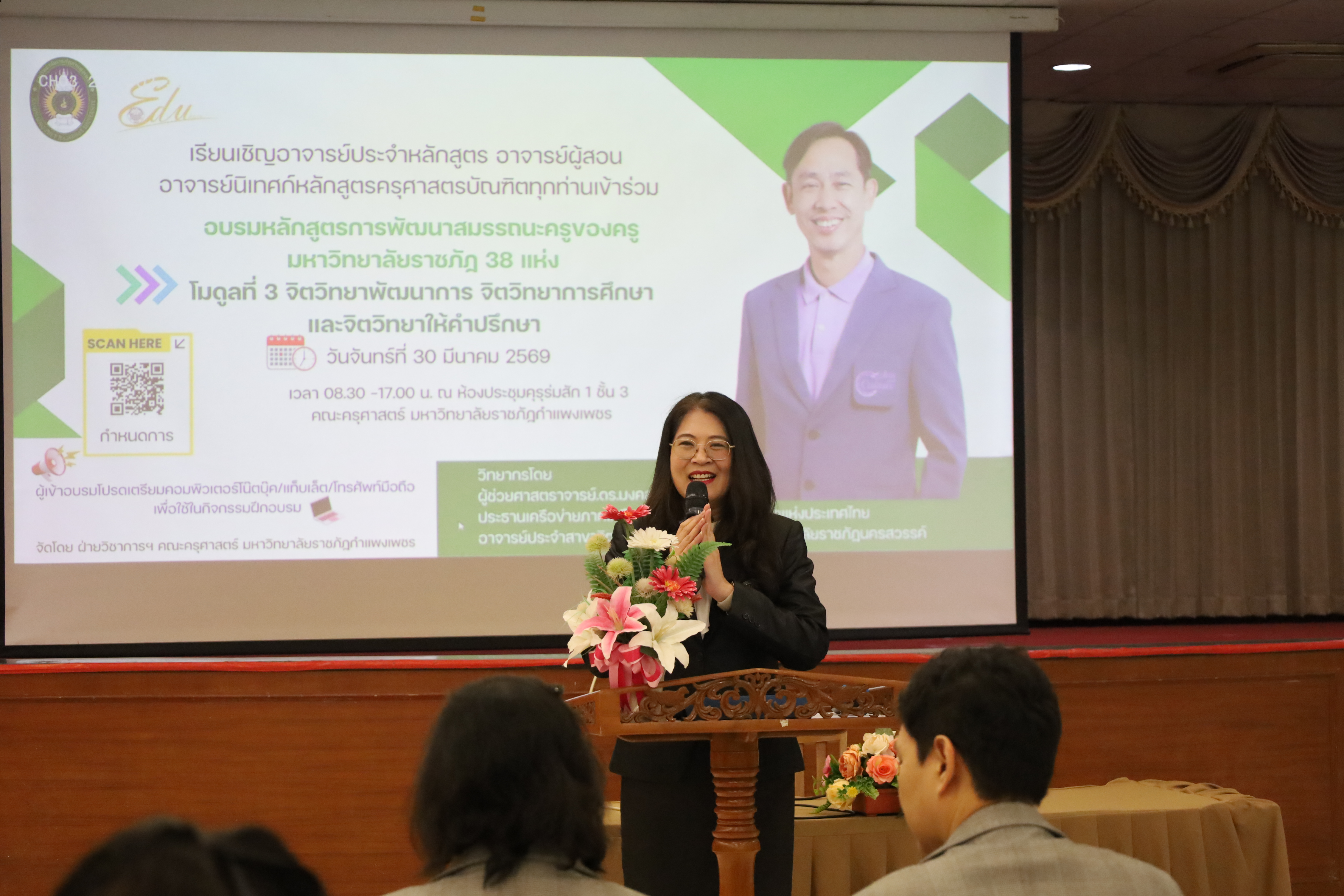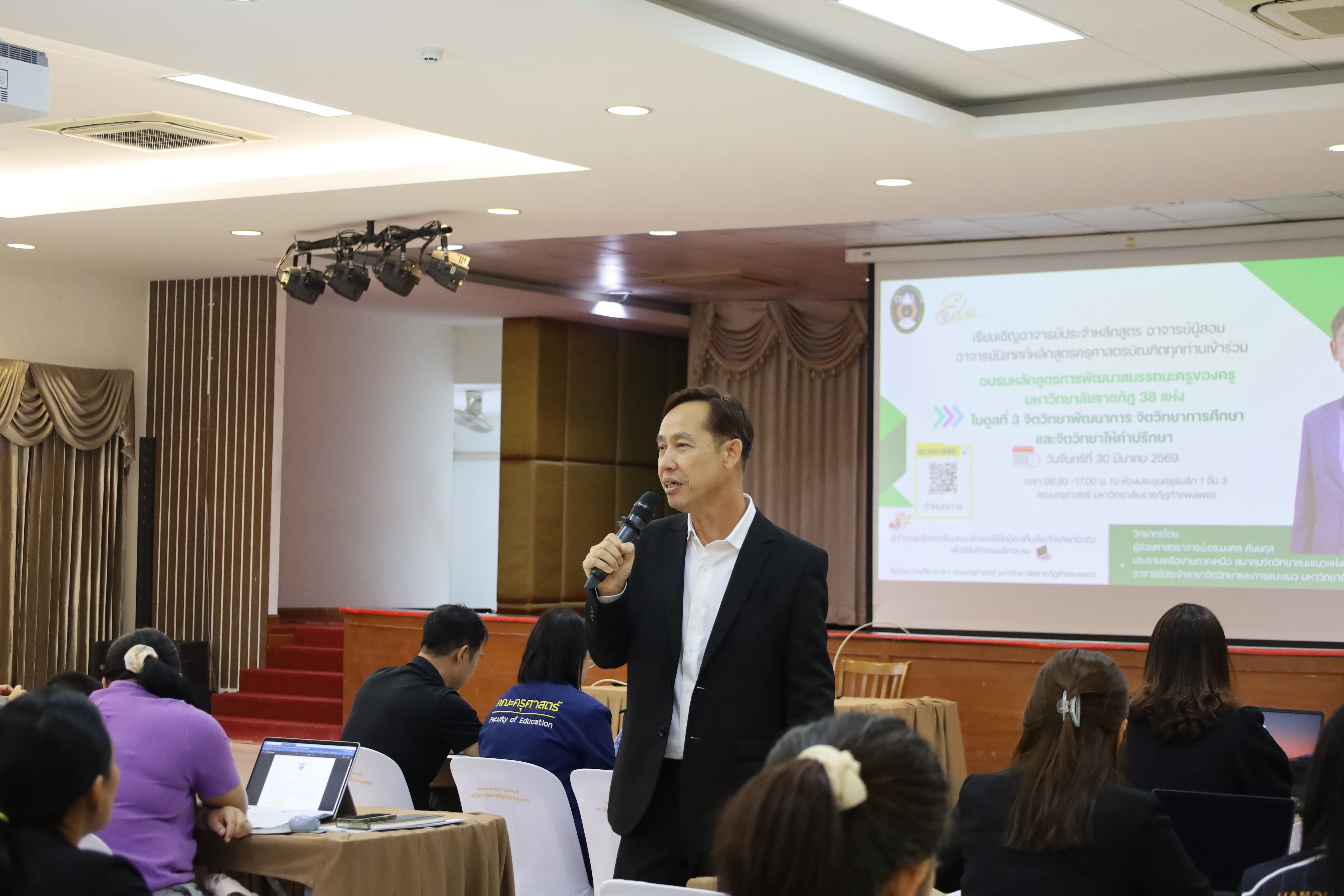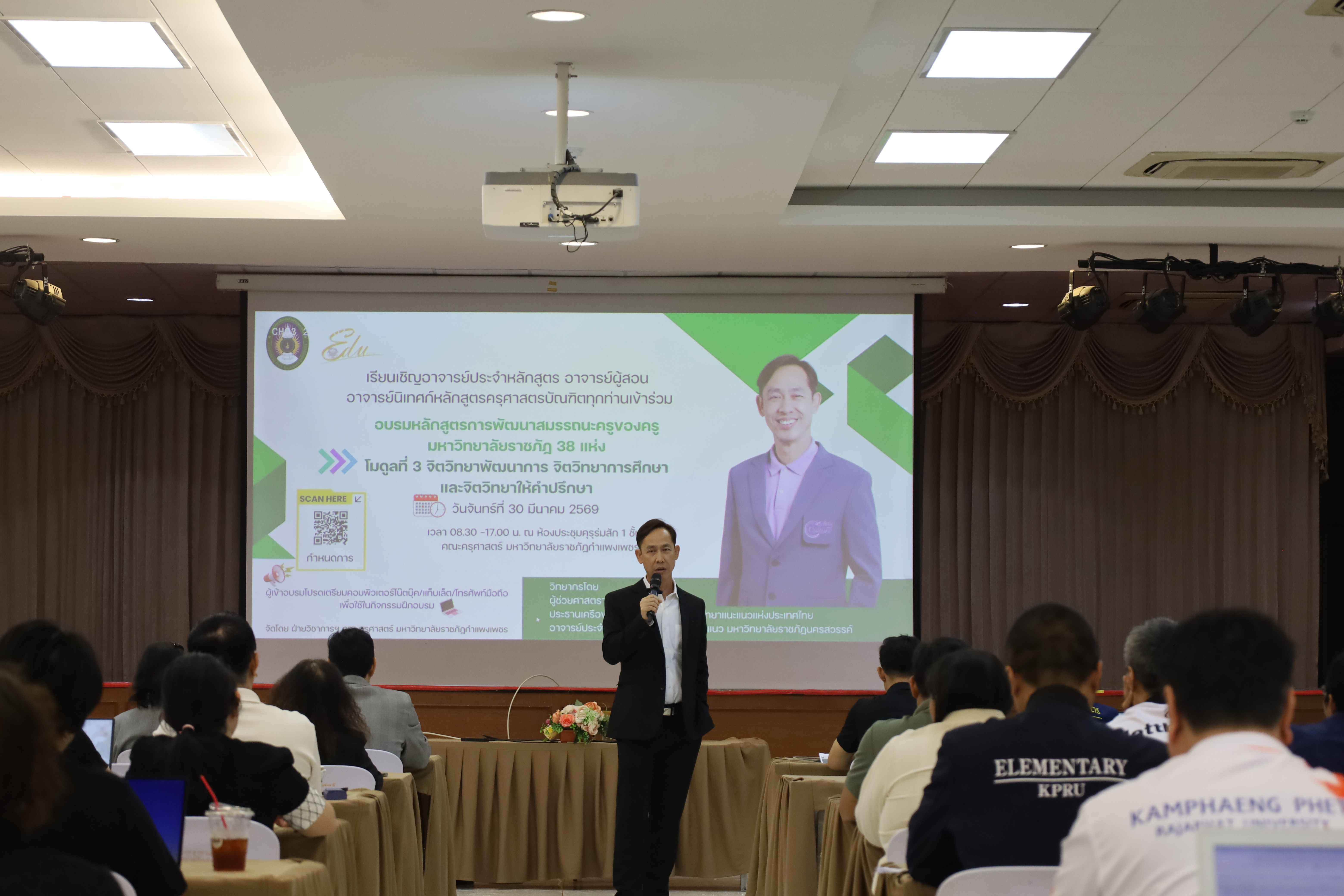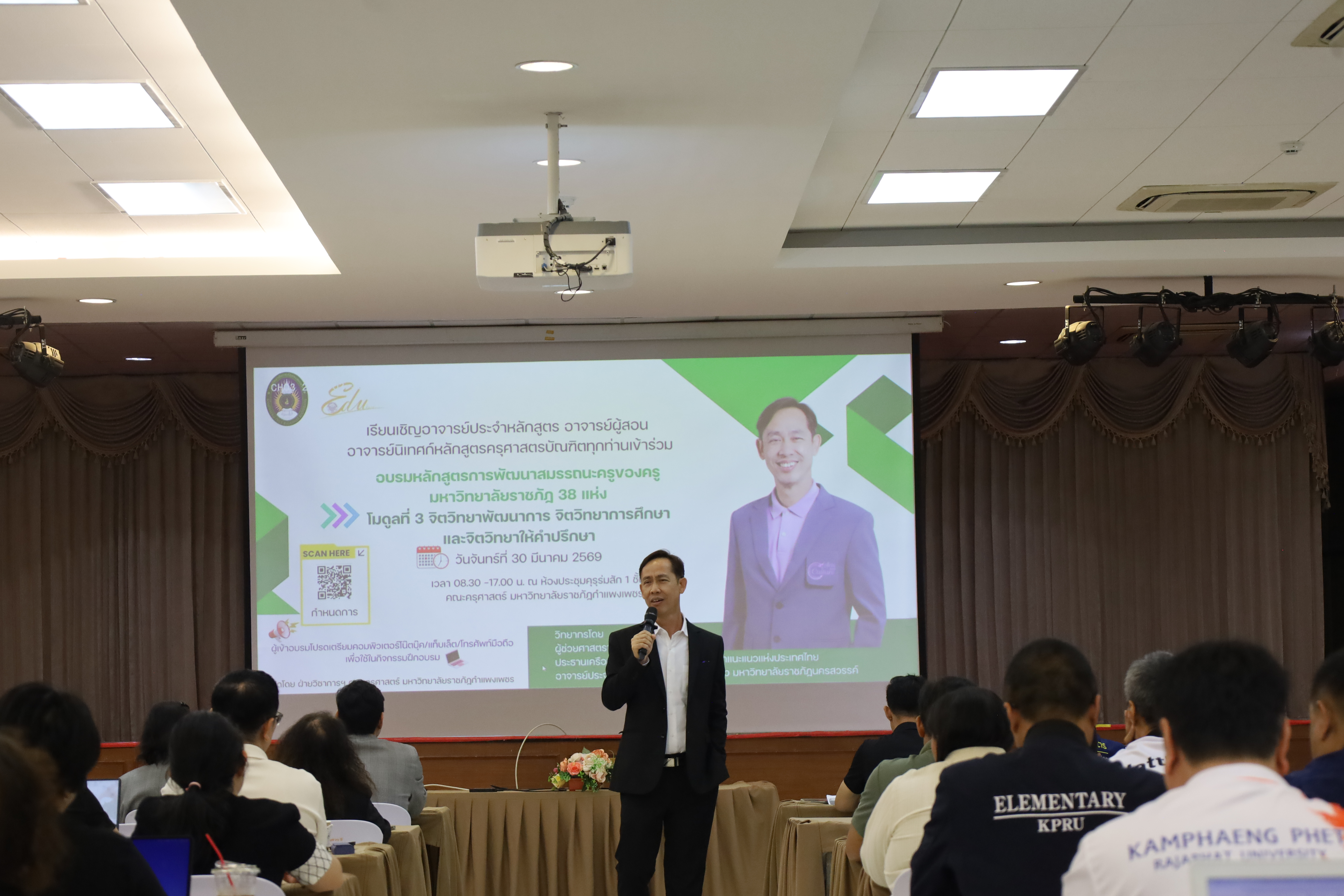 วันที่ 30 มี.ค.2569 พิธีเปิดโครงการพัฒนาสมรรถนะครูของครูมหาวิทยาลัยราชภัฏ 38 แห่ง จัดโดยคณะครุศาสตร์ มหาวิทยาลัยราชภัฏกำแพงเพชร ได้รับเกียรติจาก ผู้ช่วยศาสตราจารย์ ดร.ปรียานุช พรหมภาษิต อธิการบดีมหาวิทยาลัยราชภัฏกำแพงเพชรเป็นประธานในพิธีเปิด และกล่าวรายงานโดยผู้ช่วยศาสตราจารย์ ดร.ประจบ ขวัญมั่น คณบดีคณะครุศาสตร์ มหาวิทยาลัยราชภัฏกำแพงเพชร