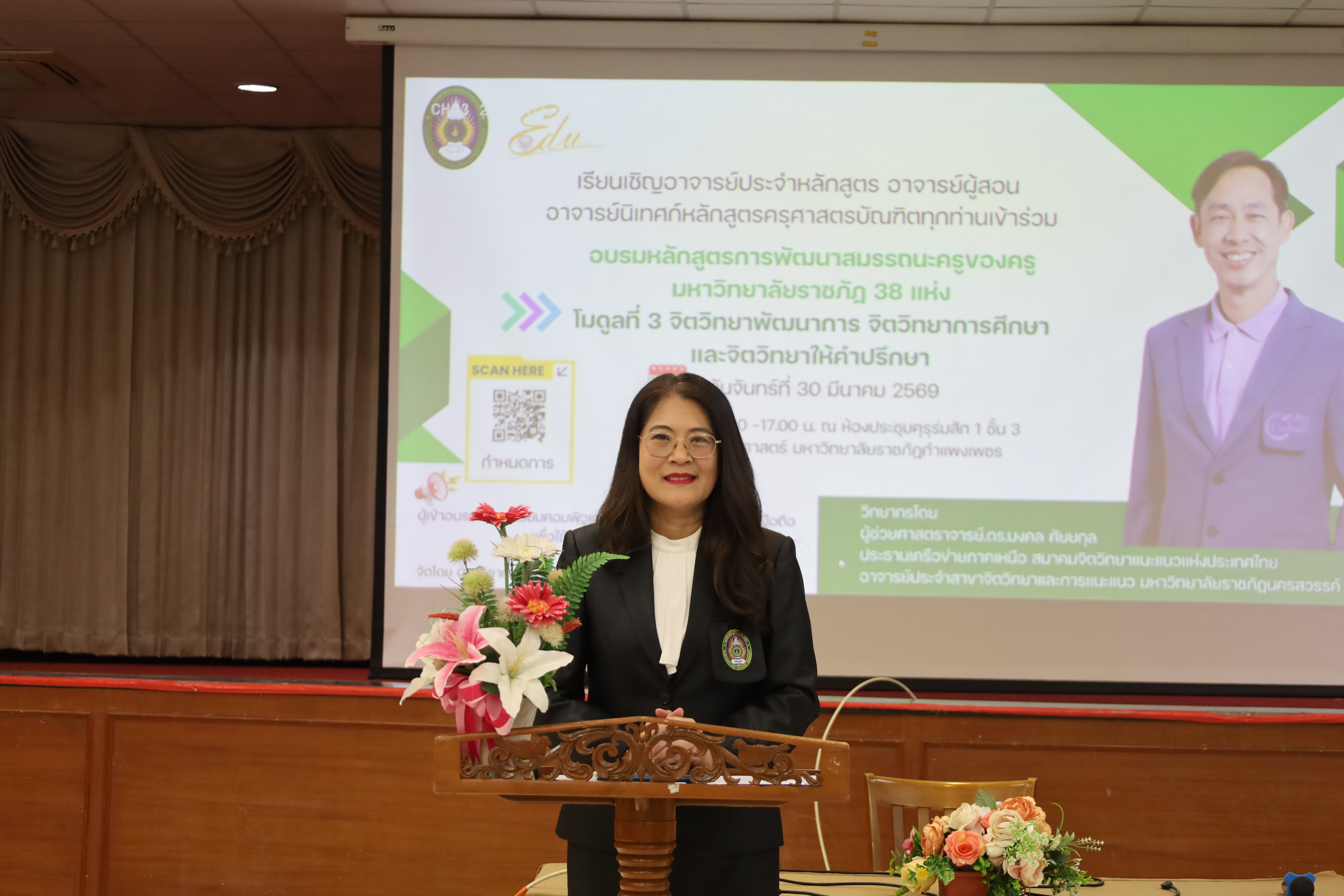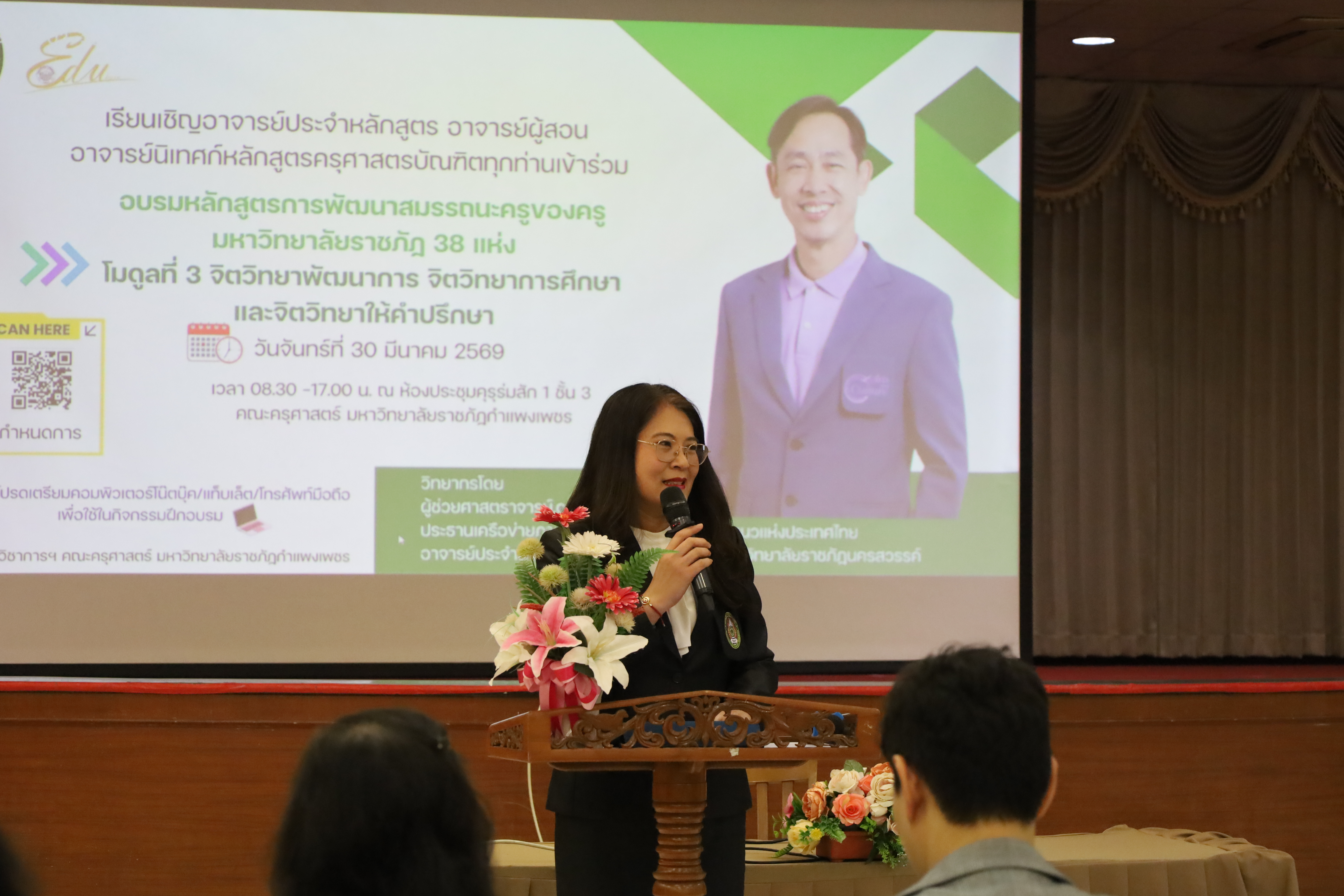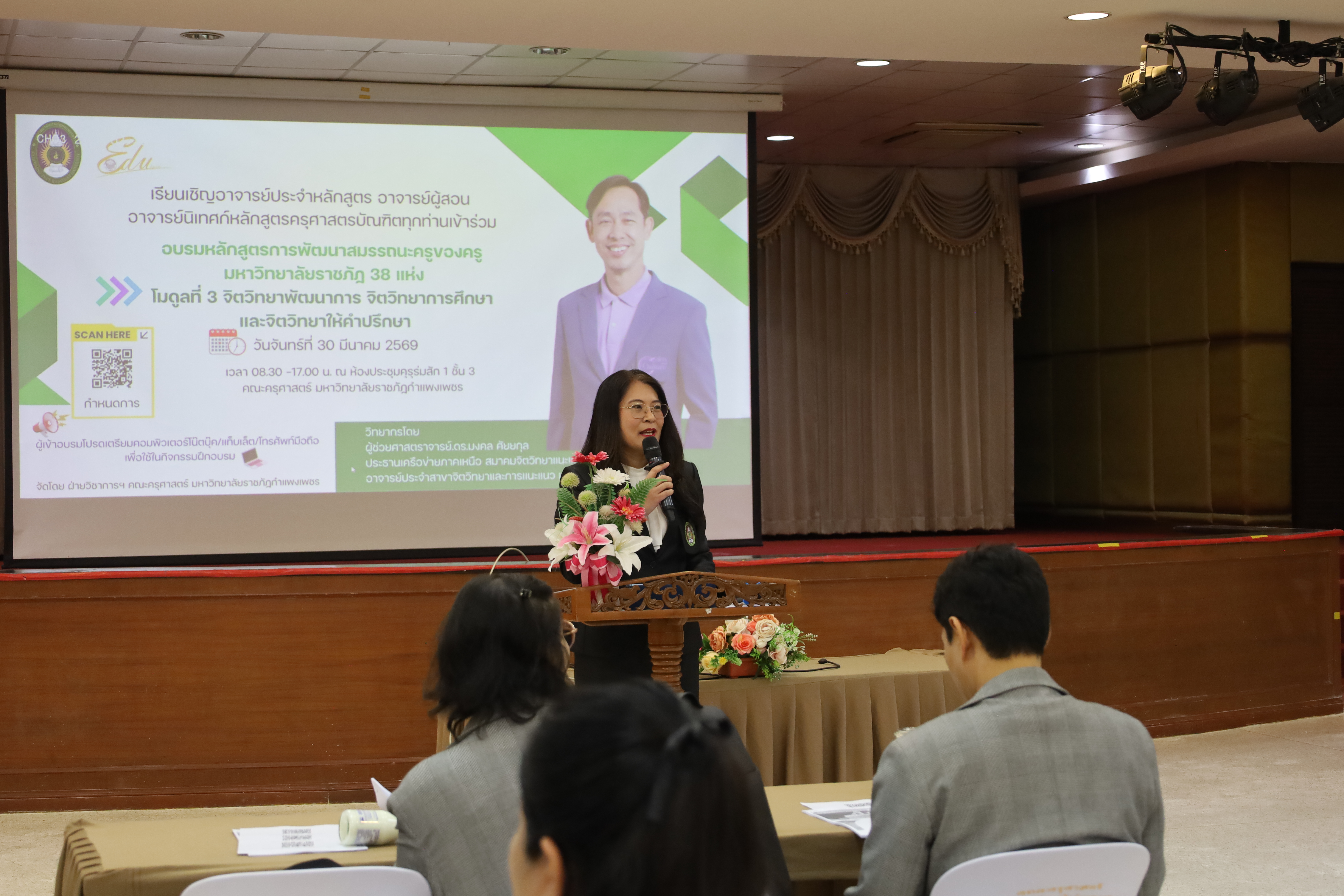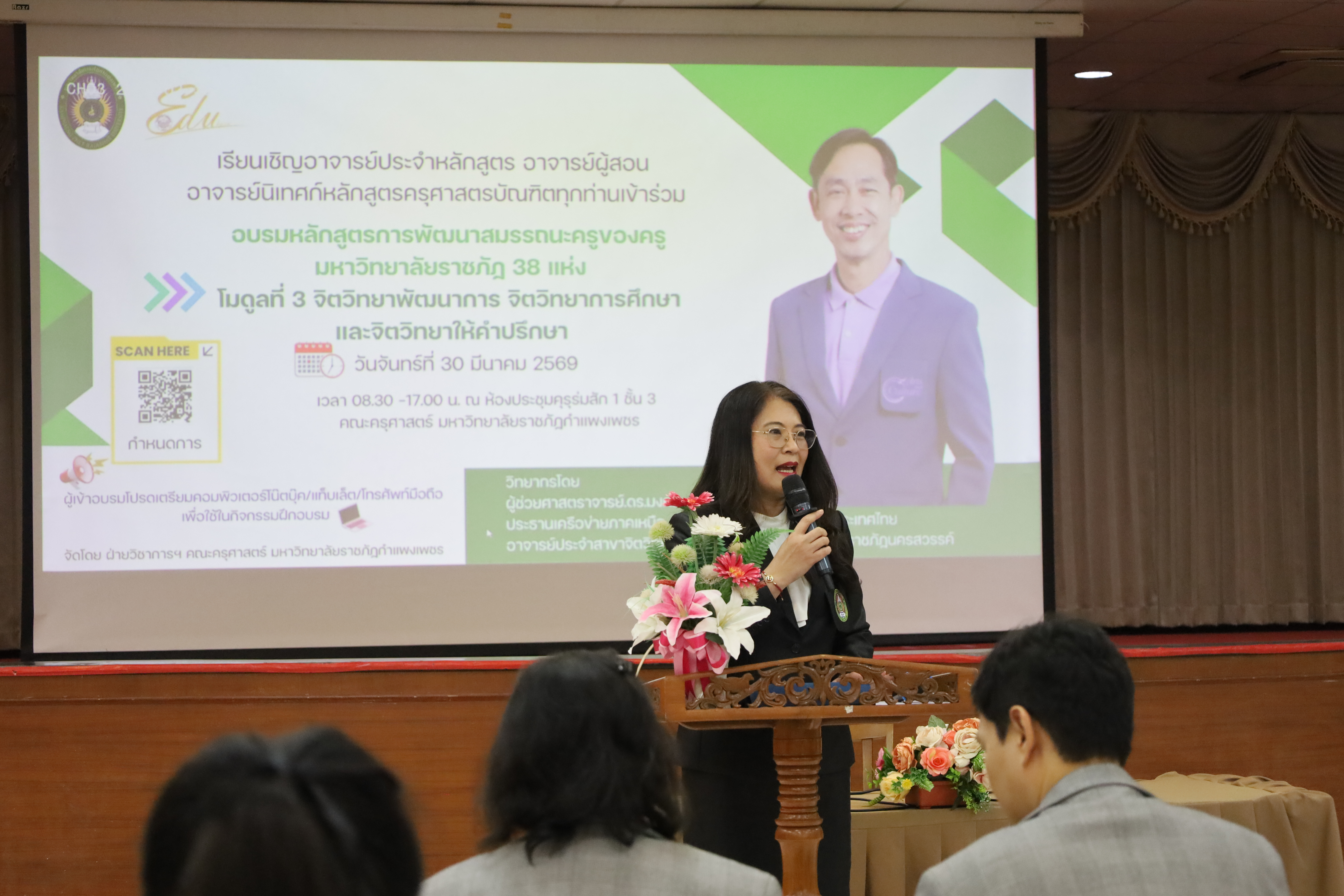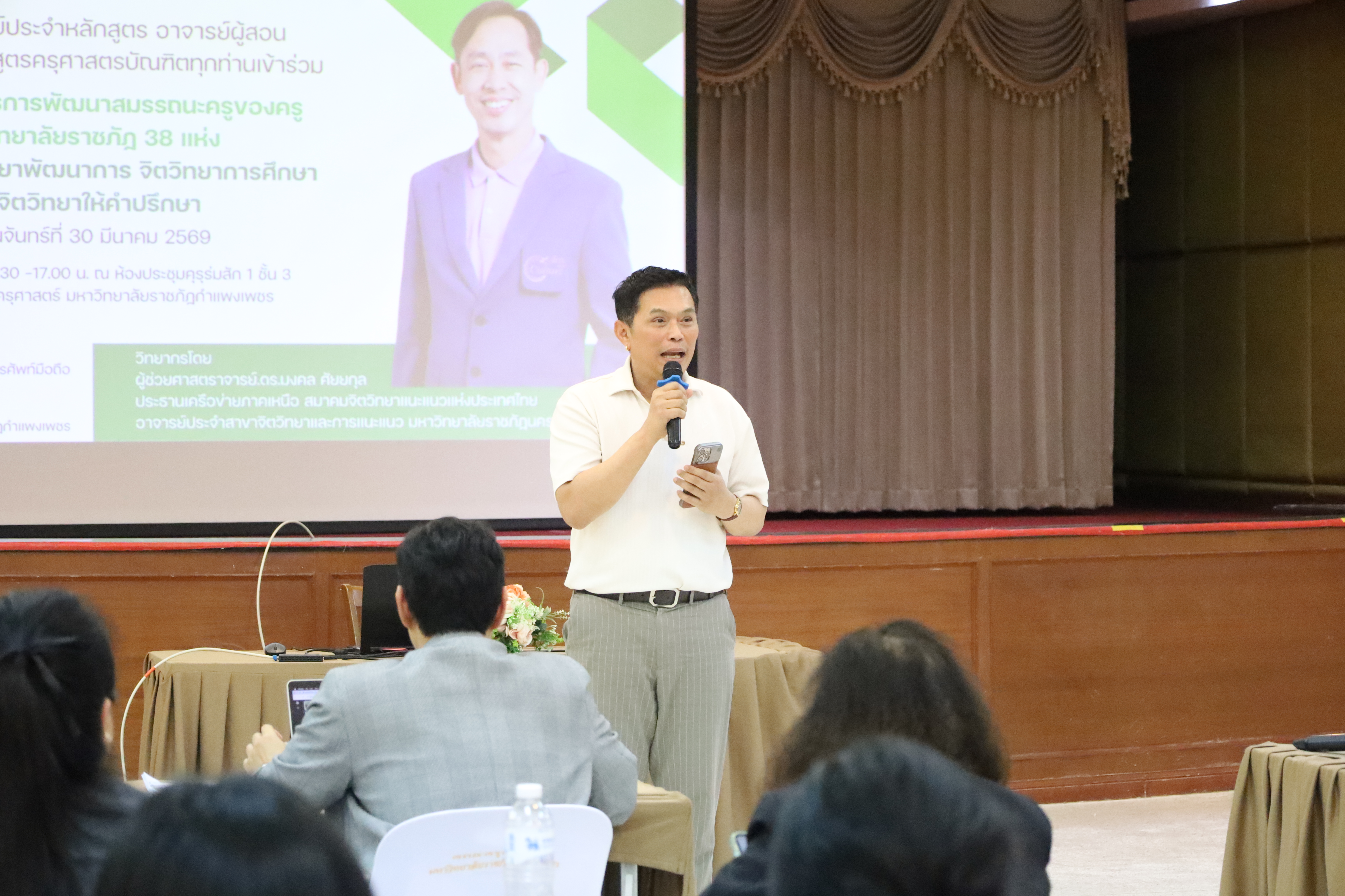 วันที่ 30 มี.ค.2569 พิธีเปิดโครงการพัฒนาสมรรถนะครูของครูมหาวิทยาลัยราชภัฏ 38 แห่ง จัดโดยคณะครุศาสตร์ มหาวิทยาลัยราชภัฏกำแพงเพชร ได้รับเกียรติจาก ผู้ช่วยศาสตราจารย์ ดร.ปรียานุช พรหมภาษิต อธิการบดีมหาวิทยาลัยราชภัฏกำแพงเพชรเป็นประธานในพิธีเปิด และกล่าวรายงานโดยผู้ช่วยศาสตราจารย์ ดร.ประจบ ขวัญมั่น คณบดีคณะครุศาสตร์ มหาวิทยาลัยราชภัฏกำแพงเพชร
