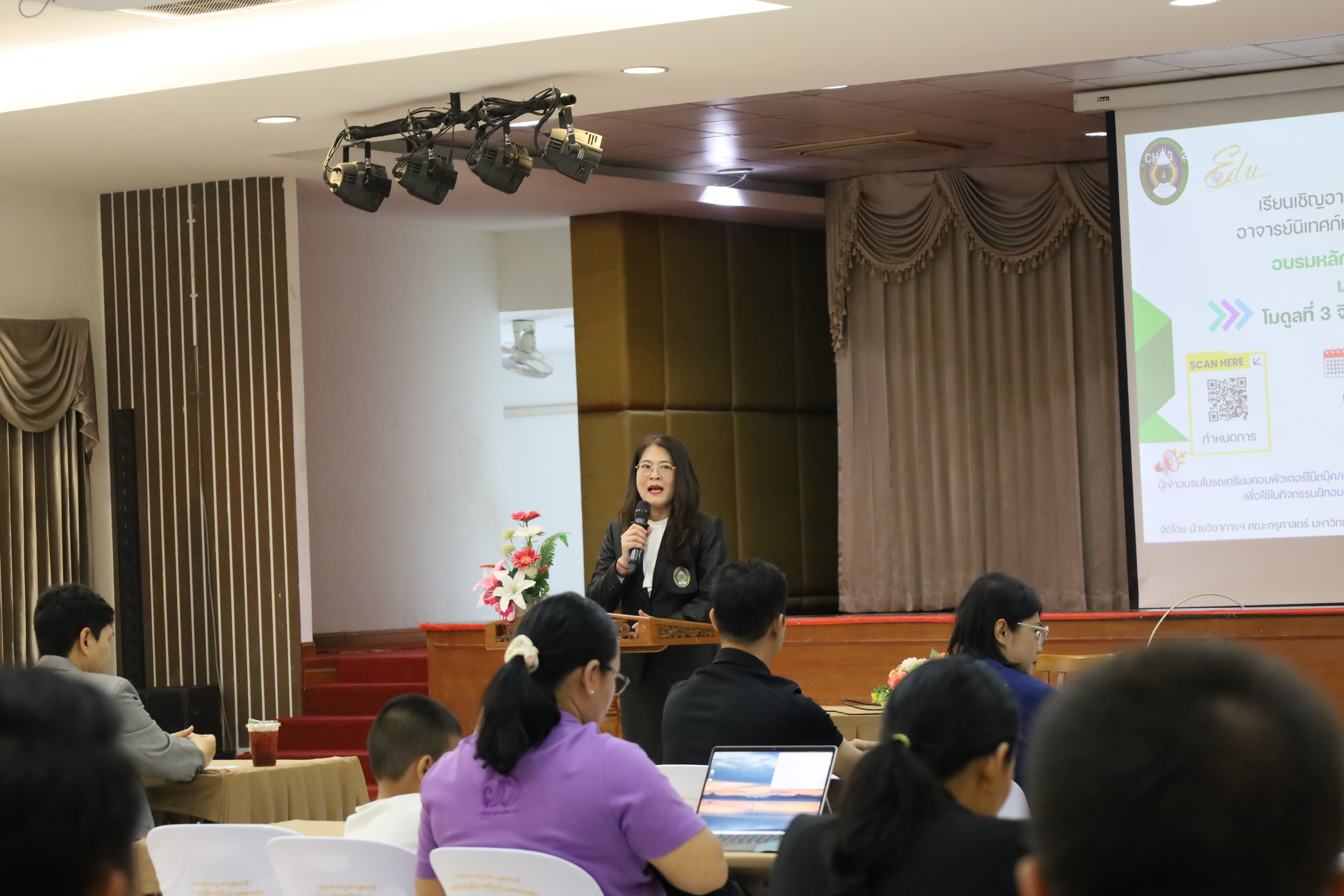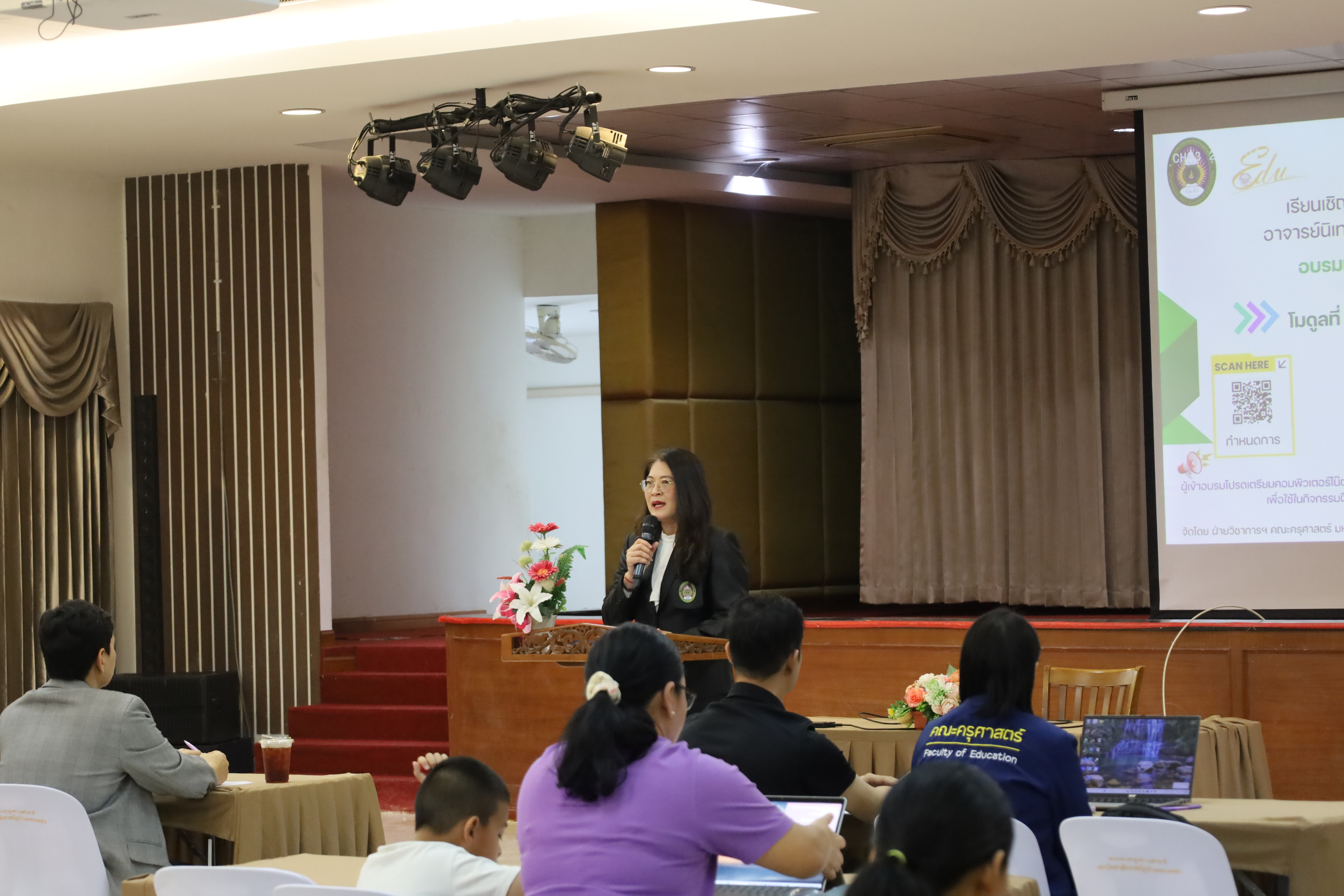 มาเป็นวิทยากรถ่ายทอดองค์ความรู้ ผู้เข้ารับการอบรมจำนวน 92 คน ซึ่งประกอบด้วยอาจารย์ผู้สอนและอาจารย์นิเทศหลักสูตรครุศาสตรบัณฑิต จากคณะครุศาสตร์ คณะมนุษยศาสตร์และสังคมศาสตร์ และคณะวิทยาศาสตร์และเทคโนโลยี ซึ่งเป็นคณะร่วมผลิต