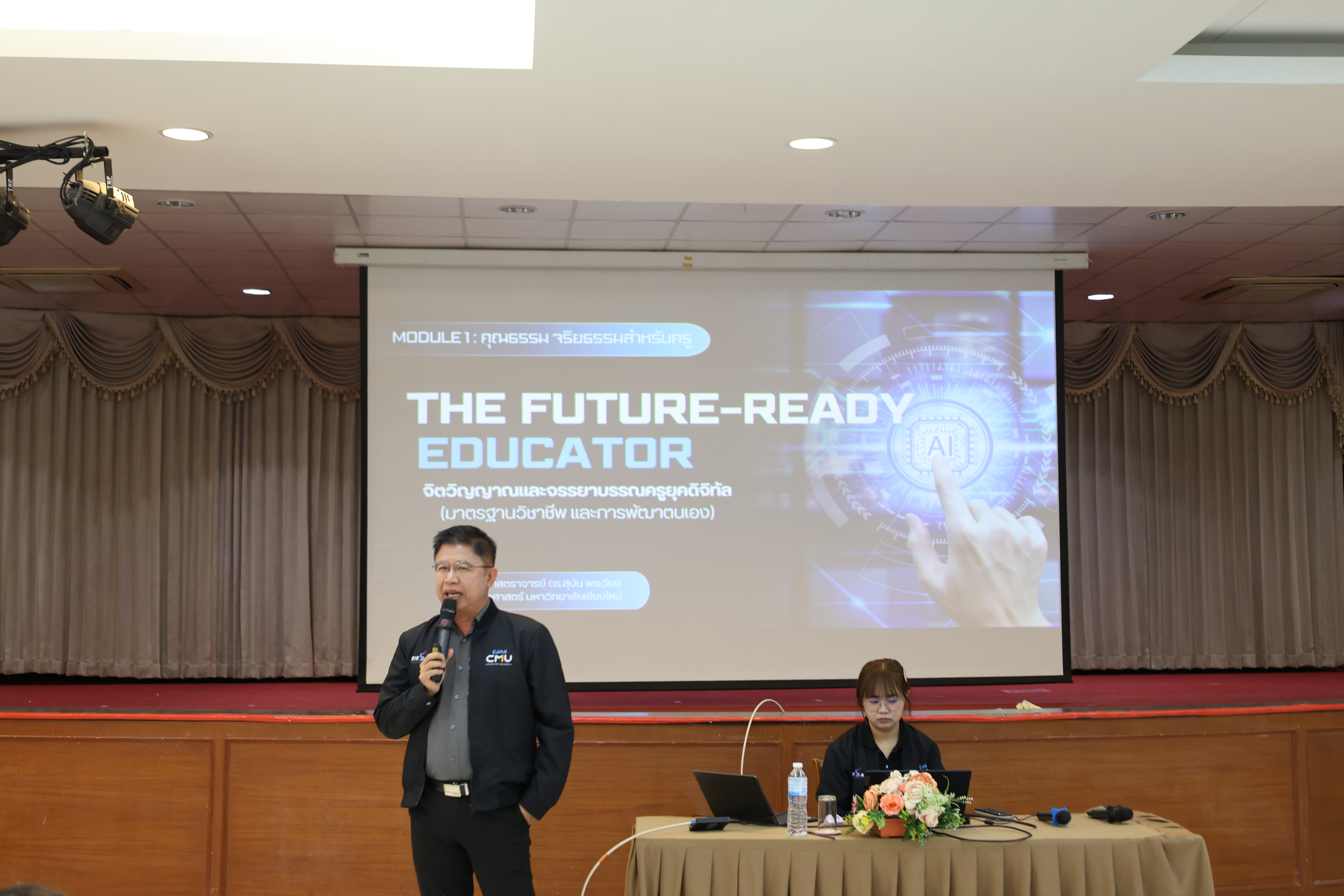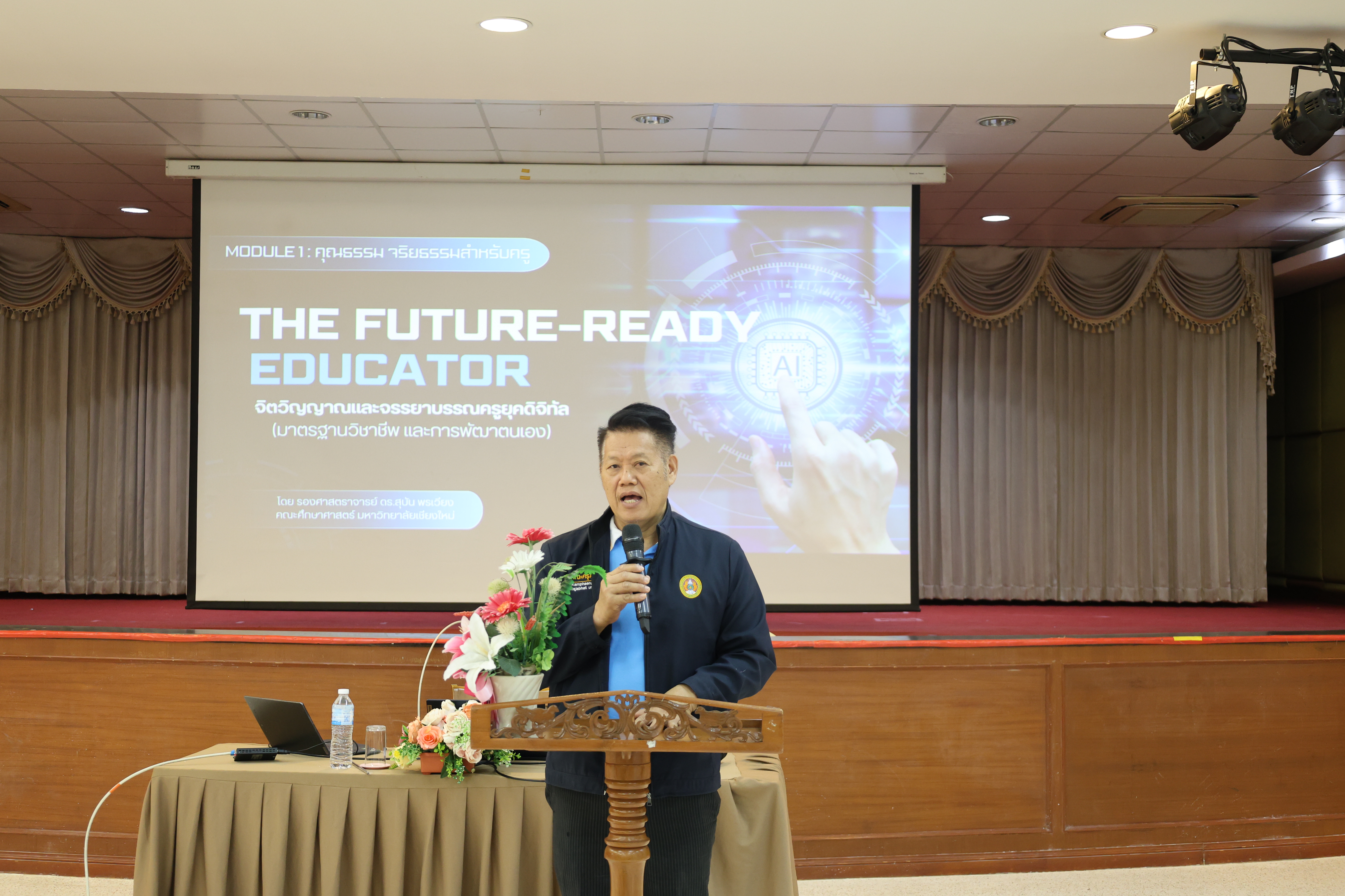 และ โมดูลที่ 10 ทักษะการโค้ชเพื่อการพัฒนา Soft Skills โดยได้รับเกียรติจากวิทยากรผู้ทรงคุณวุฒิจากหลากหลายสถาบัน และในวันนี้เป็นการอบรมในโมดูลที่ 1 เรื่อง “คุณธรรมจริยธรรมสำหรับครู” ซึ่งได้รับเกียรติจาก รองศาสตราจารย์ ดร.สุบัน พรเวียง หัวหน้าสาขาวิชาการบริหารการศึกษา คณะศึกษาศาสตร์ มหาวิทยาลัยเชียงใหม่ มาเป็นวิทยากรถ่ายทอดองค์ความรู้